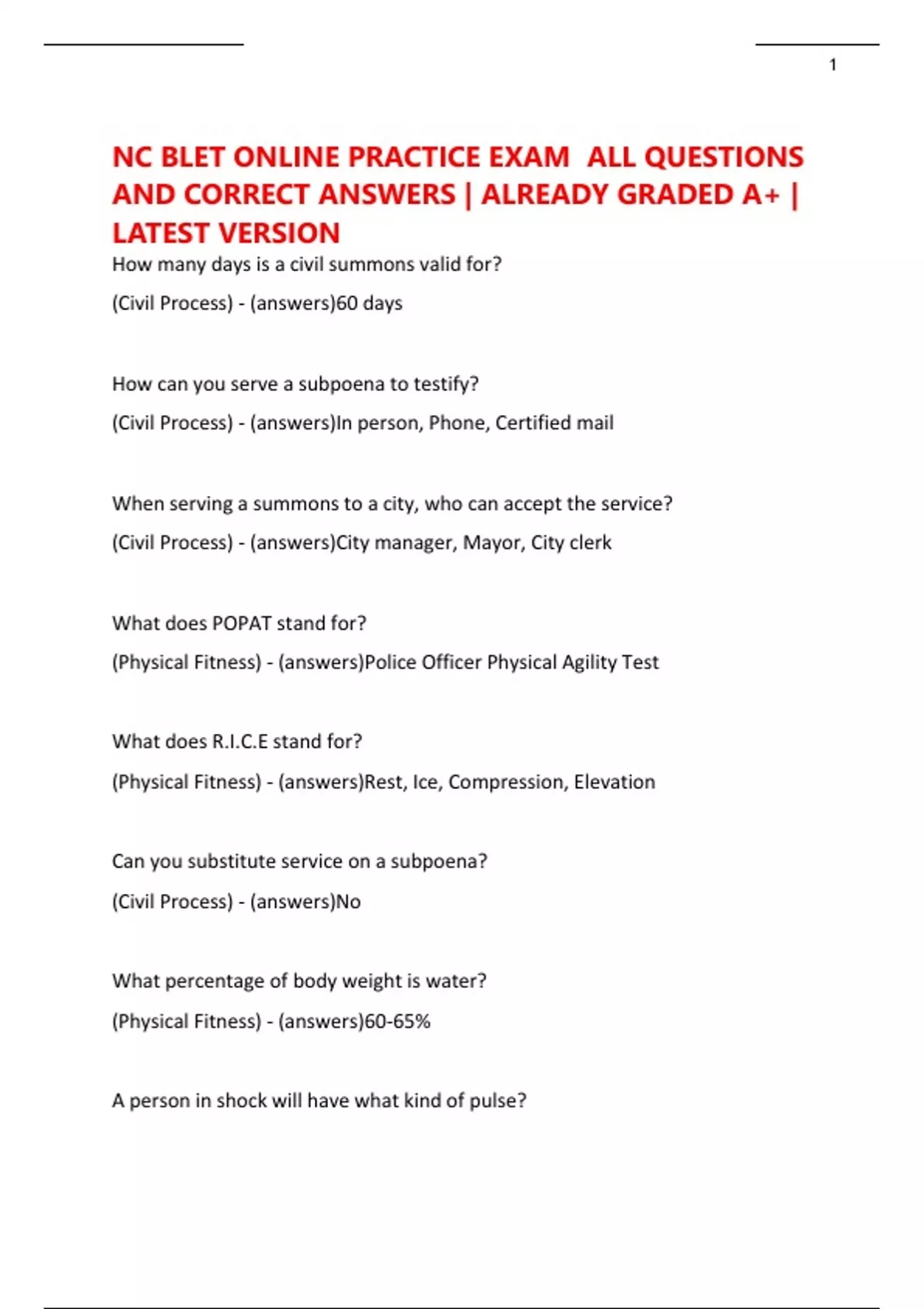 NC BLET CIVIL PROCESS 2025| BRAND NEW ACTUAL EXAM WITH 100% VERIFIED QUESTIONS AND CORRECT SOLUTIONS| GUARANTEED VALUE PACK| ACE YOUR GRADES.
