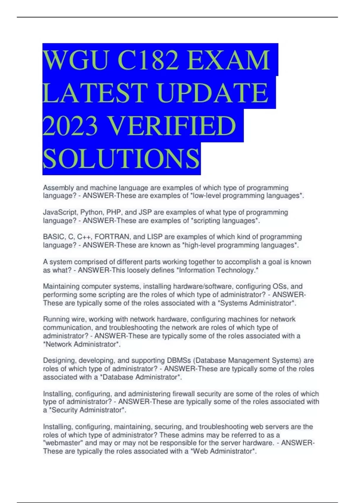 PROVIDING THE LATEST APPEALING EXAM UPDATES, NURSING ASSINGMENTS, EXAMS AND TESTBANKS . AVAILABLE AND TRUSTED CONTENT OF THE HIGHEST QUALITY. A GUARANTEED PASS IN YOUR EXAMS WHEN YOU PURCHASE MY DOCUMENTS .Please Always leave a review after purchasing any document so as to make sure our customers are 100% satisfied .