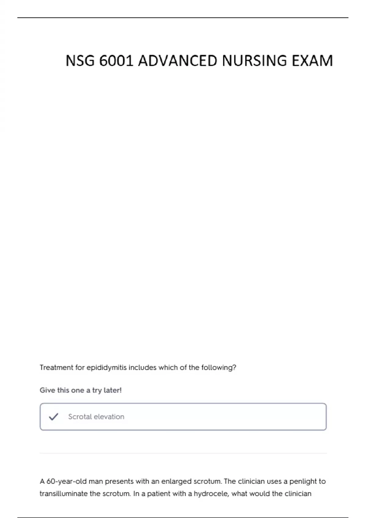 BUNDLE FOR NSG 6001 / NSG6001 ADVANCED NURSING WITH VERIFIED ANSWERS ALREADY GRADED A+