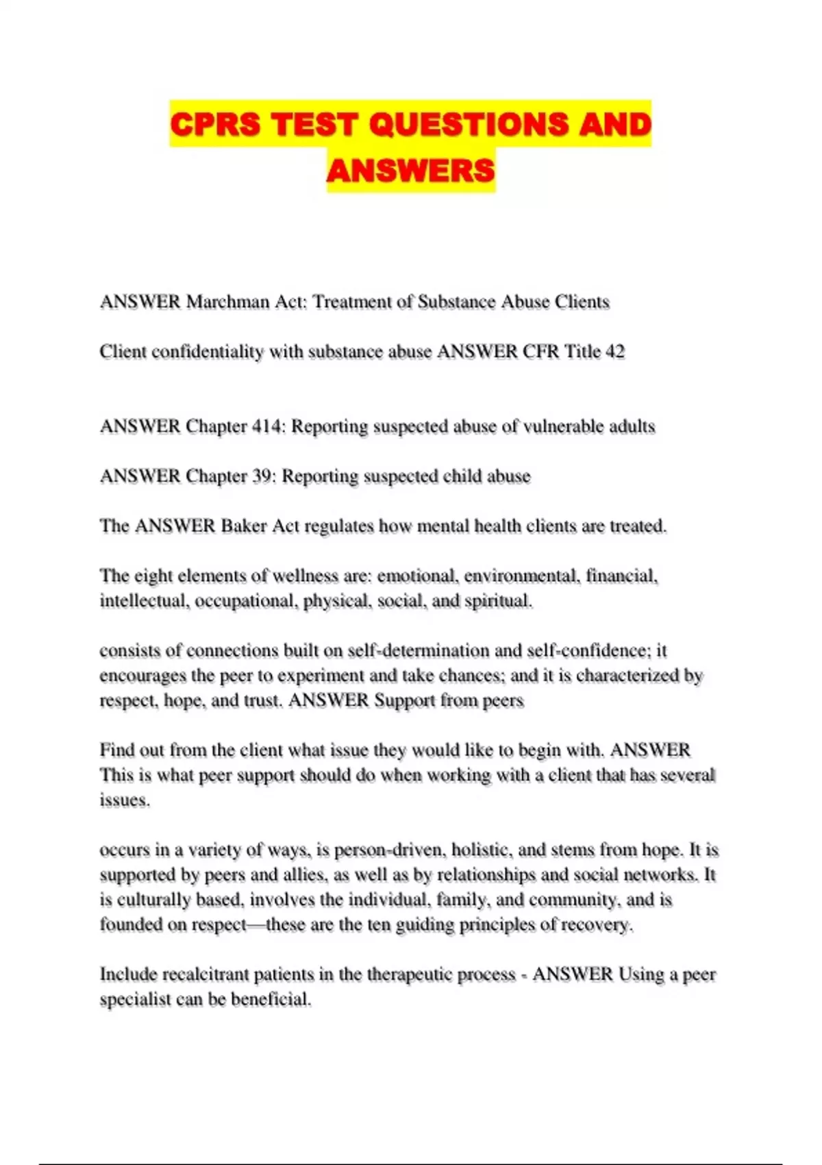 CPRS TEST QUESTIONS AND ANSWERS