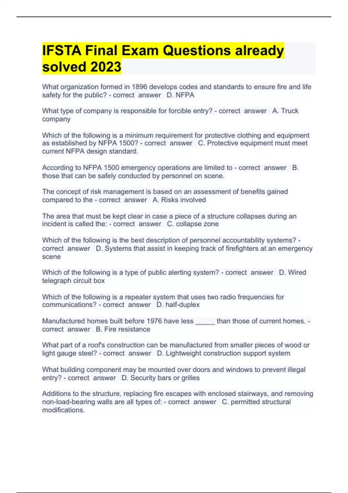 PACKAGE DEAL OF IFSTA ACTUAL QUESTIONS WITH COMPLETE SOLUTION LATEST UPDATE 2025