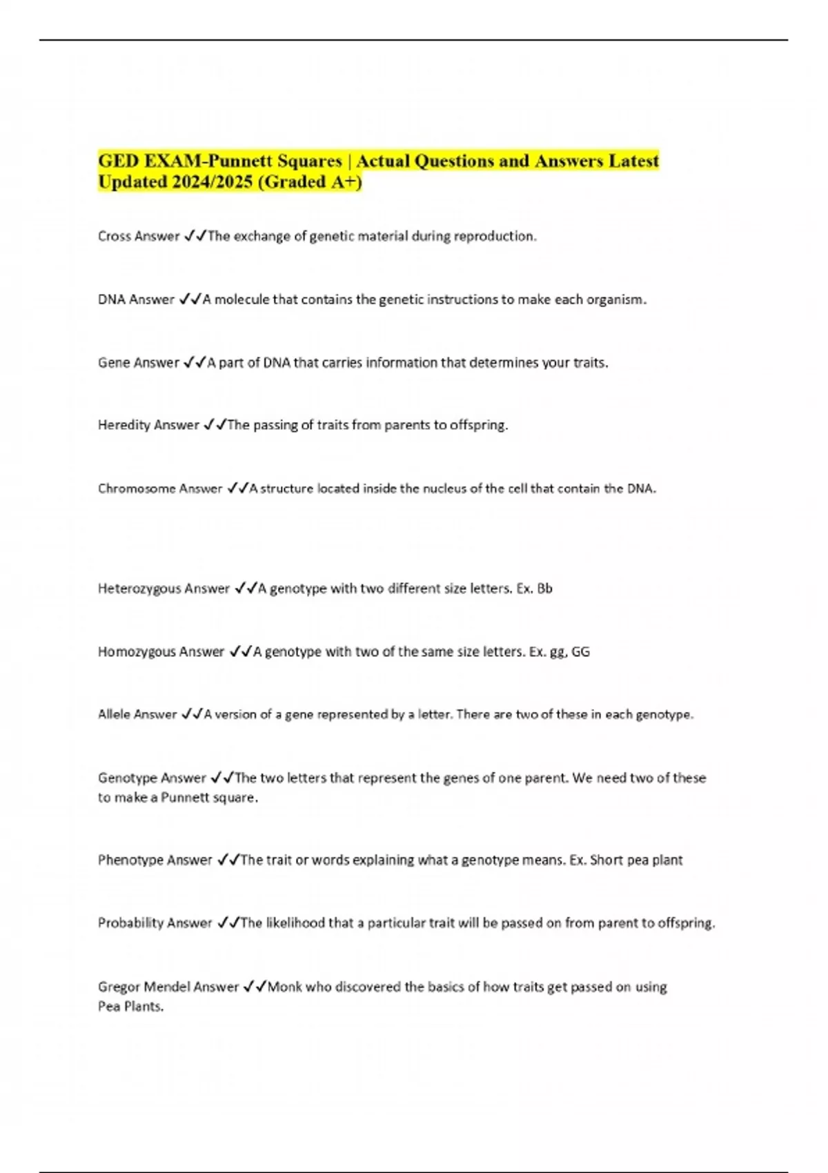 PACKAGE DEAL || Punnett squares Exams With Verified Solutions 2025
