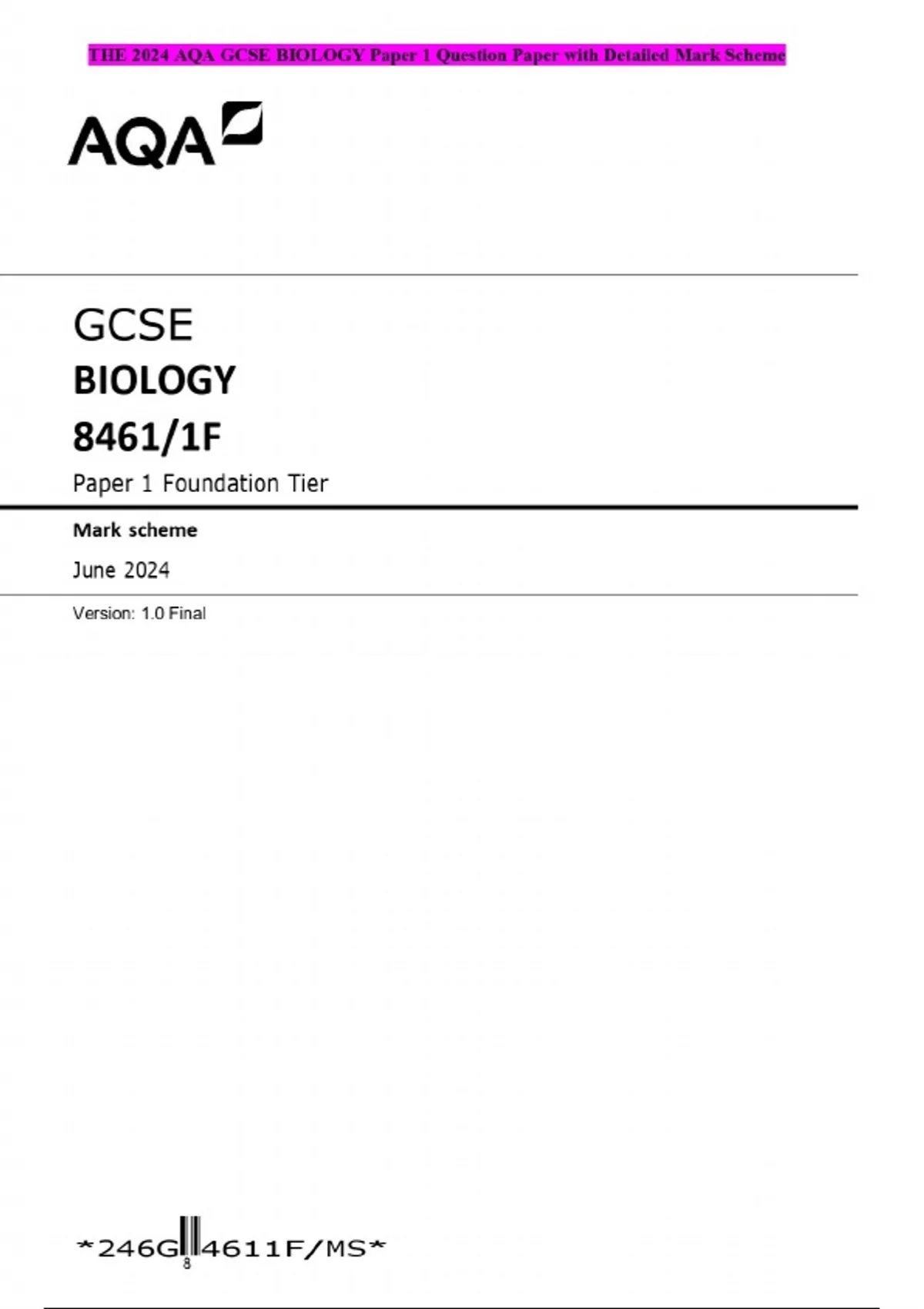 THE 2024 AQA GCSE BIOLOGY Paper 1 Question Paper with Detailed Mark Scheme