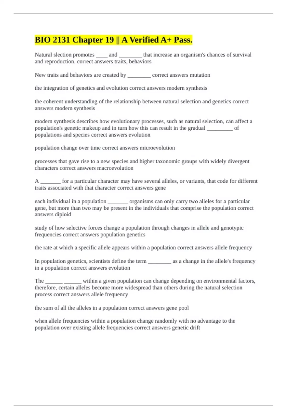 BIOL ECU Survey Anatomy and Physiology Final Exam on Chapters 14, 15, and 16 || Already Graded A+. TRU Biol 2131 || with Precise Solutions. Ch 1,2,18 - Answer Guide - BIOL 2131 || Questions and 100% Accurate Answers. Cell Biology 2131: Chapter 1 - Introduction to Cell Biology (Karp 8e) || with Authenticated Answers. BIOL 2131 CH 14 || (Ne