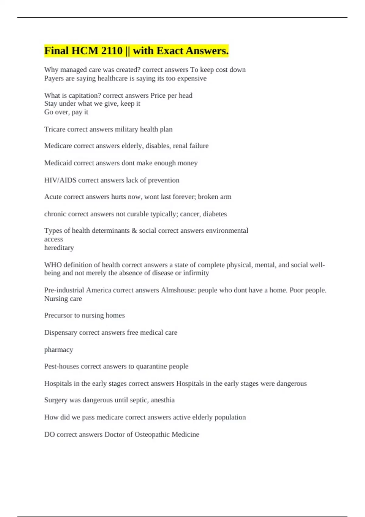 HCM 2110 Exam 2 || All Questions Answered Correctly. Final HCM 2110 || with Exact Answers. HCM 2110- 1 || with 100% Errorless Solutions. HCM 2110 Exam 3 || with Precise Solutions. HCM 2110 Exam 3 || with 100% Correct Answers. HCM 2110 Exam 2 || All Questions Answered Correctly. HCM 2110 chapter 5,9 || with 100% Errorless Answers. HCM 2110 Exam 1 ||