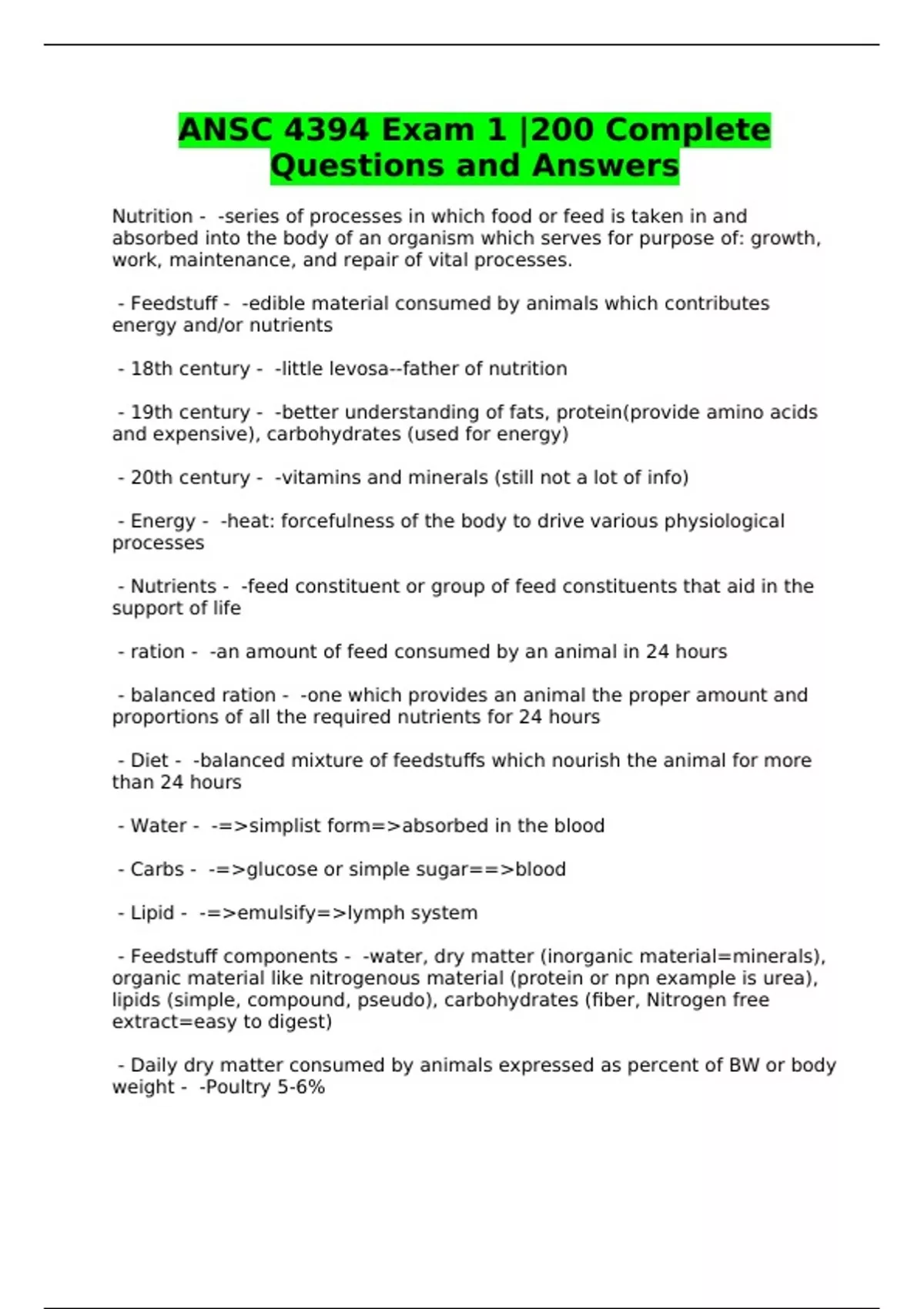 ANSC 4394 Exams - Questions and Answers - Bundle