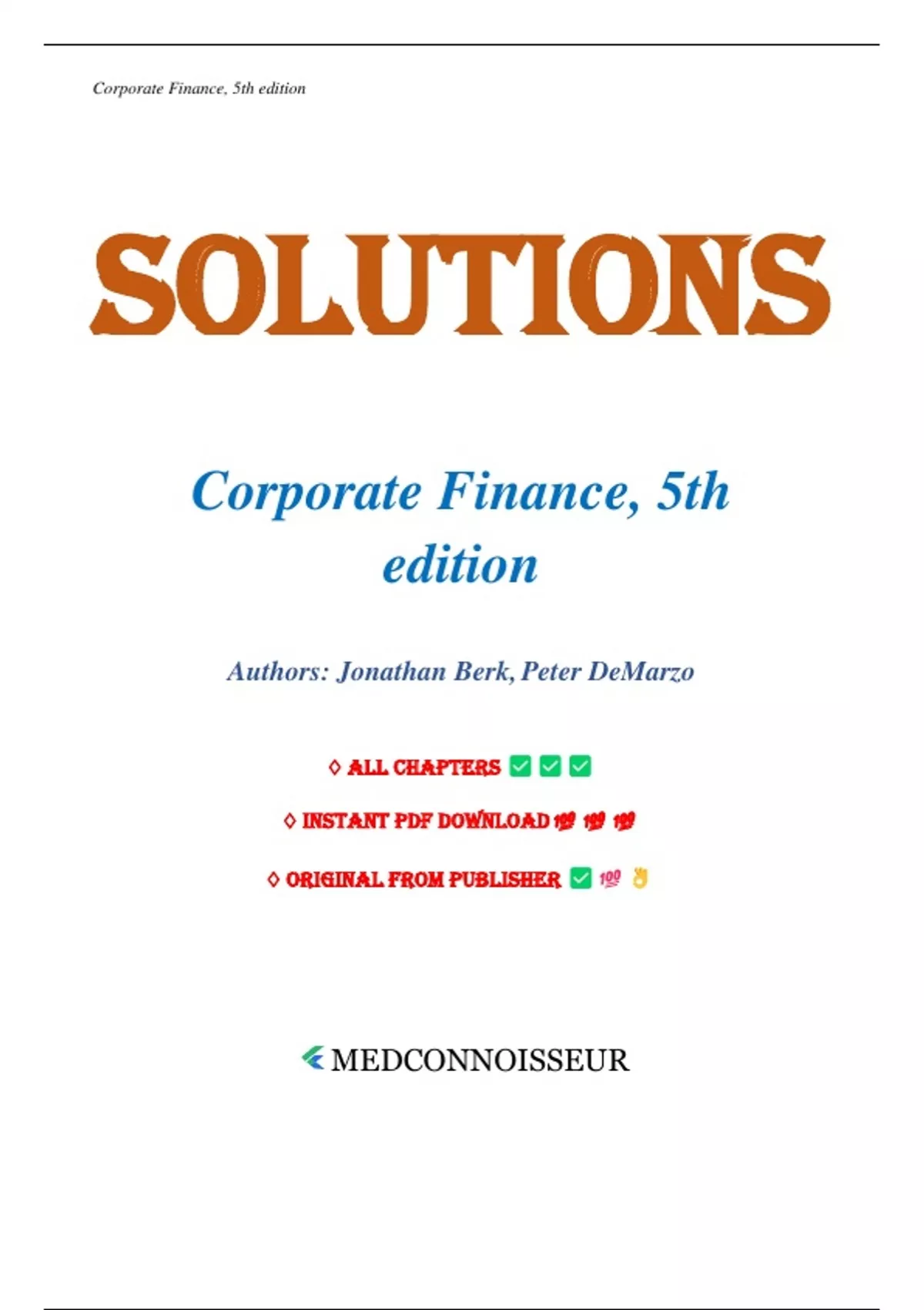 Package deal: Solutions & Test Bank - Corporate Finance, 5th edition by Jonathan Berk, Chapters 1-31