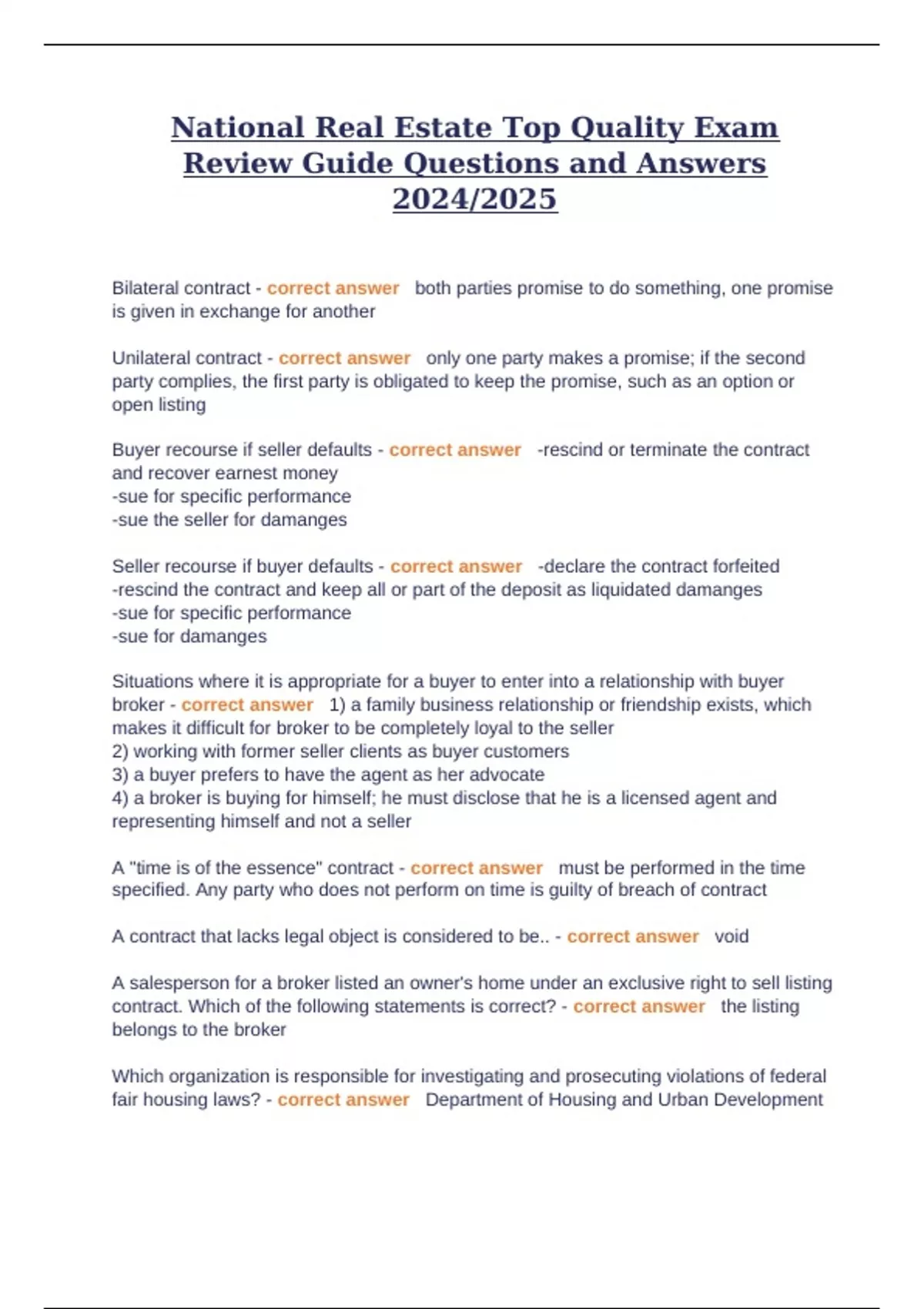 Exam (elaborations) National Real Estate Top Quality Exam Review Guide Questions and Answers 2024/2025 Exam (elaborations) National real estate Review Exam Questions with 100% satisfaction guarantee Answers 2024/2025 Exam (elaborations) National real estate Competency study guide Exam test questions with approved Answers 2024/2025 Exam (elab