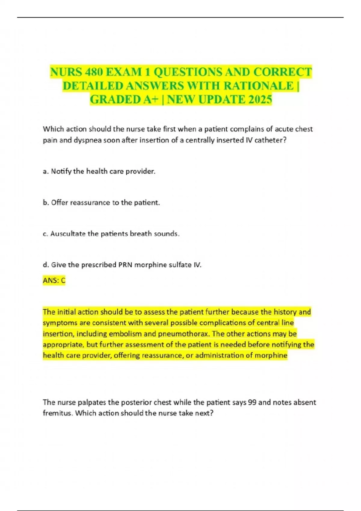 NURS 480 Study Guide Part 1 QUESTIONS AND CORRECT DETAILED ANSWERS WITH RATIONALE | GRADED A+ | NEW UPDATE 2025