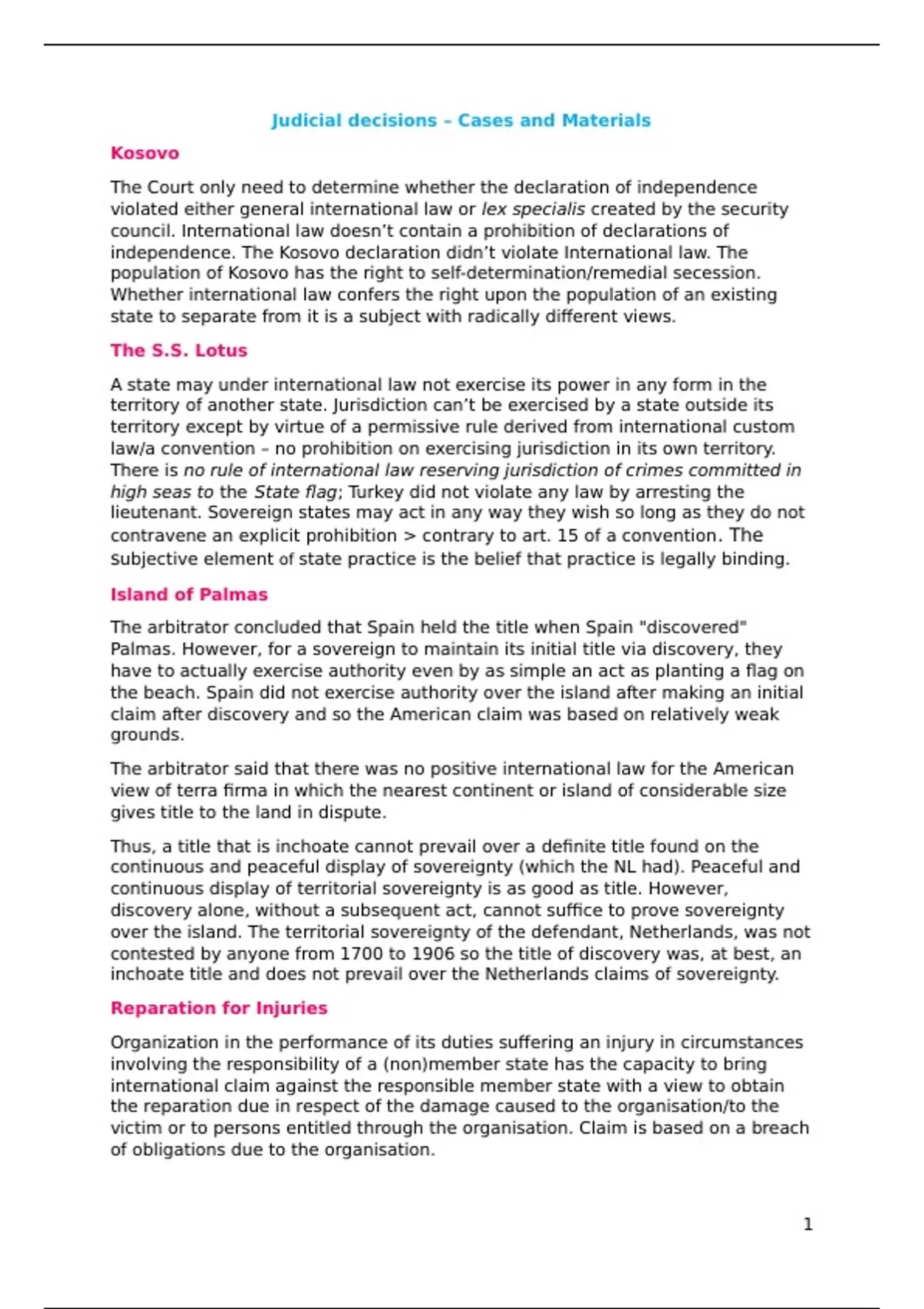 Samenvatting Introduction to International and European Union Law (RR116) - deel 3: arresten International Law