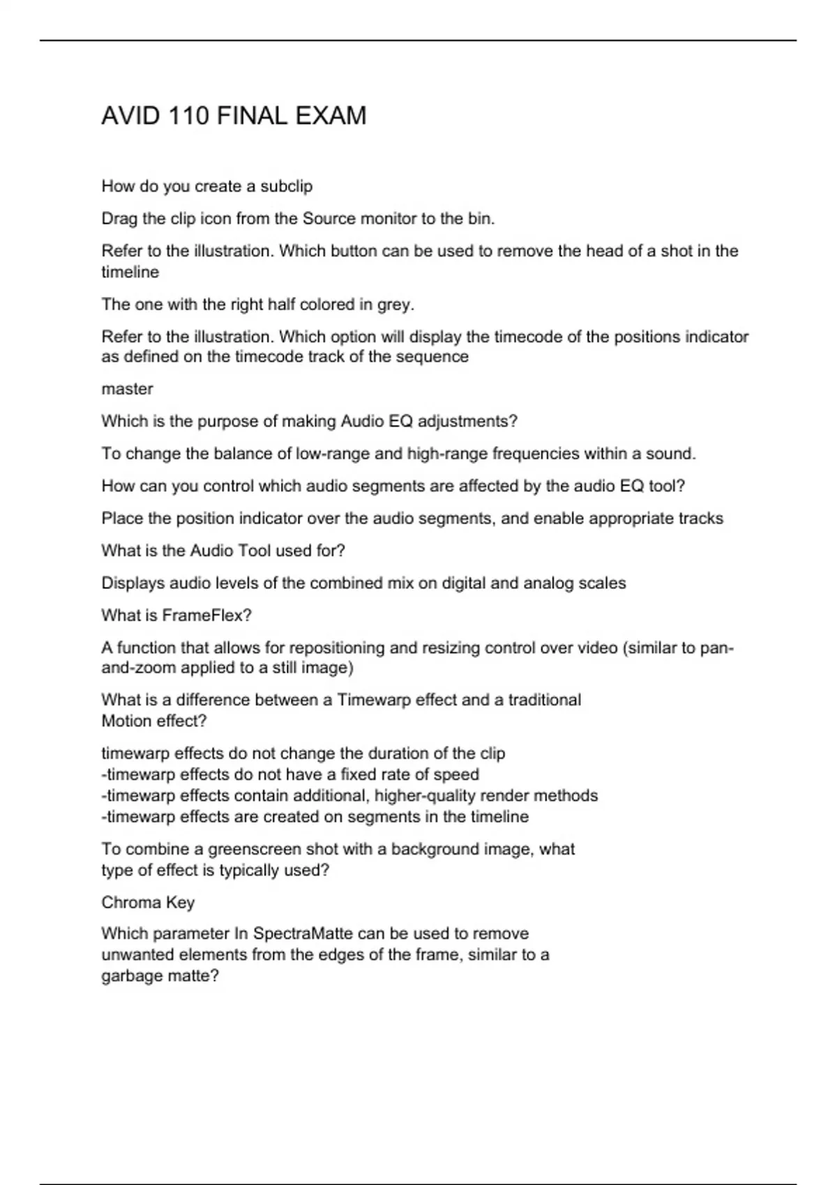 AVID 110 FINAL EXAM 2 Exam (elaborations) AVID 110 CERTIFICATION EXAM 3 Exam (elaborations) AVID 110 CERT QUESTIONS AND ANSWERS 4 Exam (elaborations) AVID 110 CERTIFICATION EXAM QUESTIONS 5 Exam (elaborations) AVID 110 EXAM QUESTIONS AND ANSWERS 6 Exam (elaborations) AVID 110 EXAM QUESTIONS AND ANSWERS 7 Exam (elaborations) AVID 110 EXAM REVI