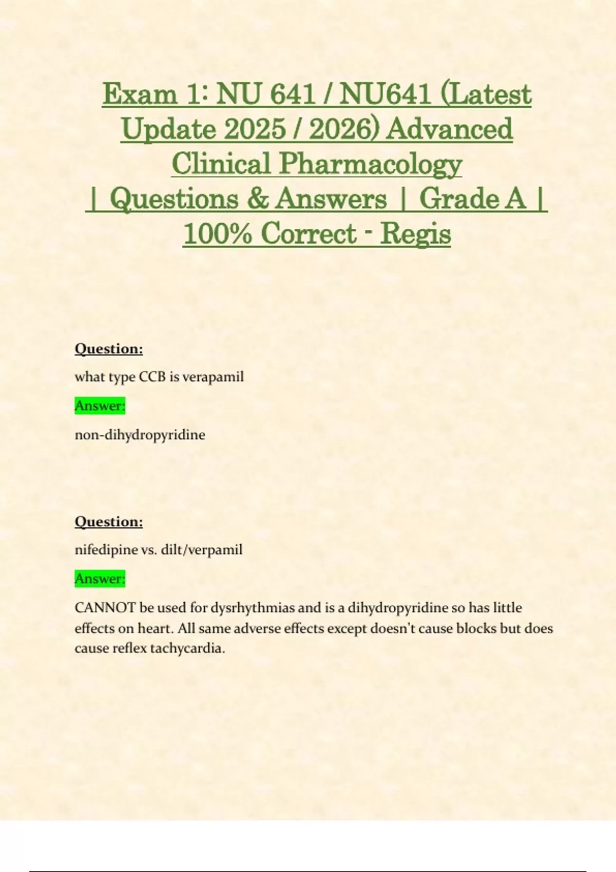 Exam 1, Exam 2 & Exam 3: NU641 / NU 641 (Latest 2025 / 2026 Updates STUDY BUNDLE PACKAGE WITH SOLUTIONS) Advanced Clinical Pharmacology | Questions and Answers | Grade A | 100% Correct (Verified Answers) - Regis