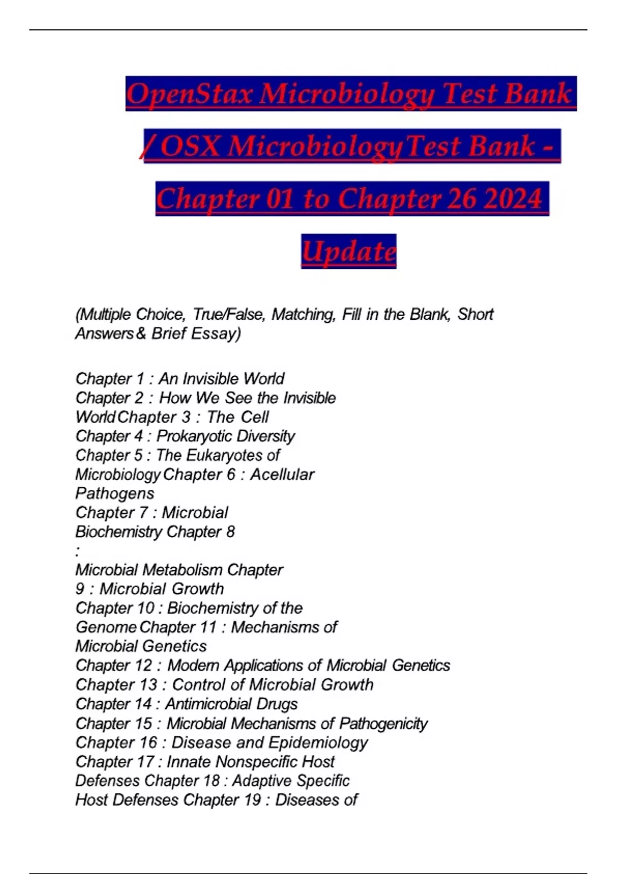 TEST BANK FOR MICROBIOLOGY, A SYSTEMS APPROACH,6TH EDITION, BY MARJORIE KELLY COWAN, HEIDI SMITH -LATEST-2023 CHAPTER 1-25/2025/2026