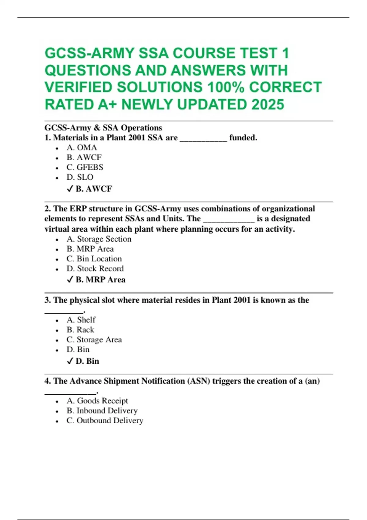 GCSS-ARMY SSA COURSE TEST 1 QUESTIONS AND ANSWERS WITH VERIFIED SOLUTIONS 100% CORRECT RATED A+ NEWLY UPDATED 2025