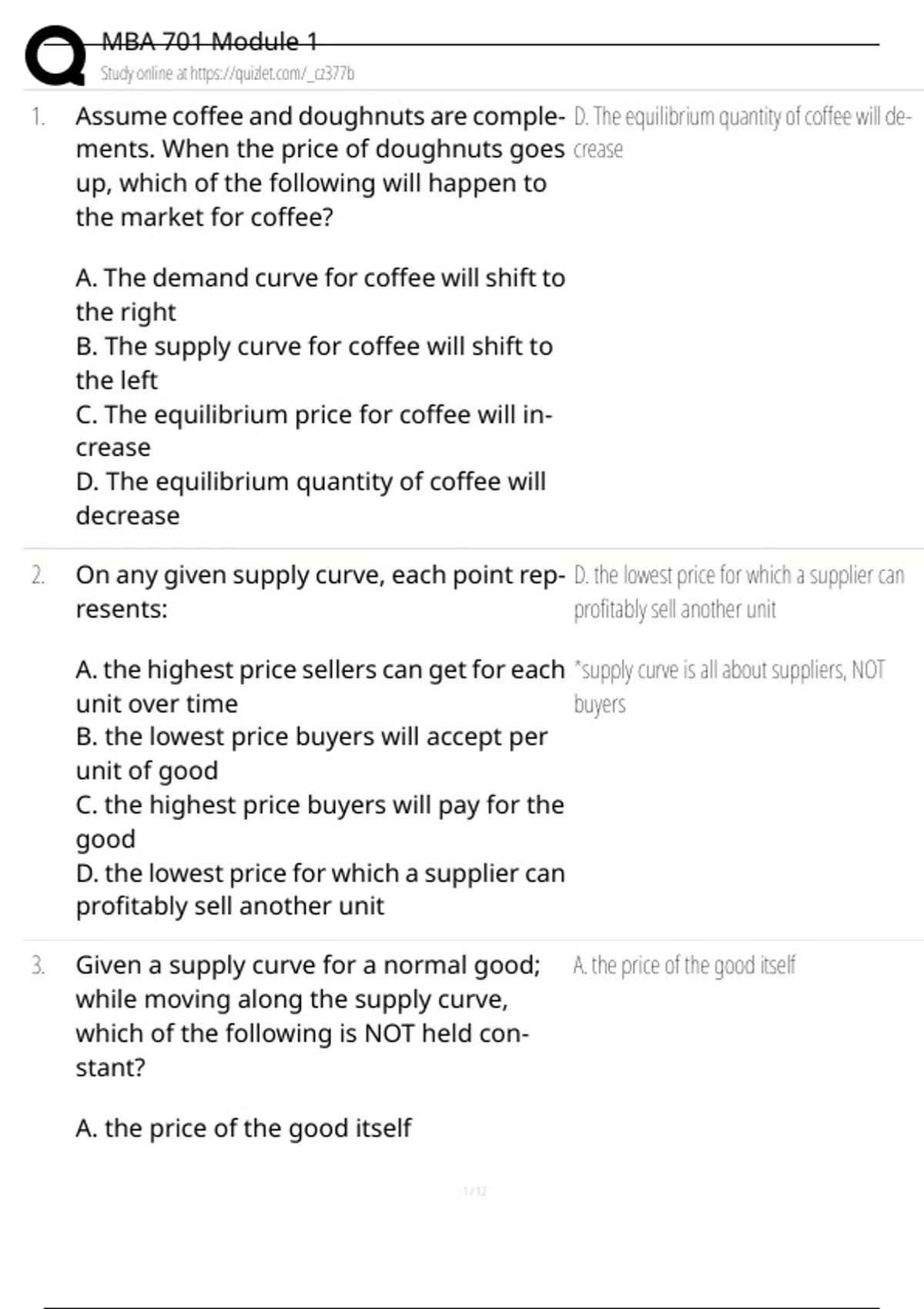 MBA 701 - Module 2 Supply & Demand | COMPLETE QUESTIONS WITH 100% RATED CORRECT ANSWERS | 2025 LATEST UPDATED | GET A+