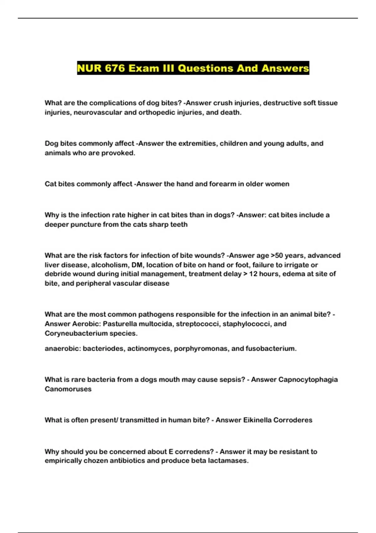 NUR 676 EXAM QUESTIONS AND CORRECT ANSWERS!!