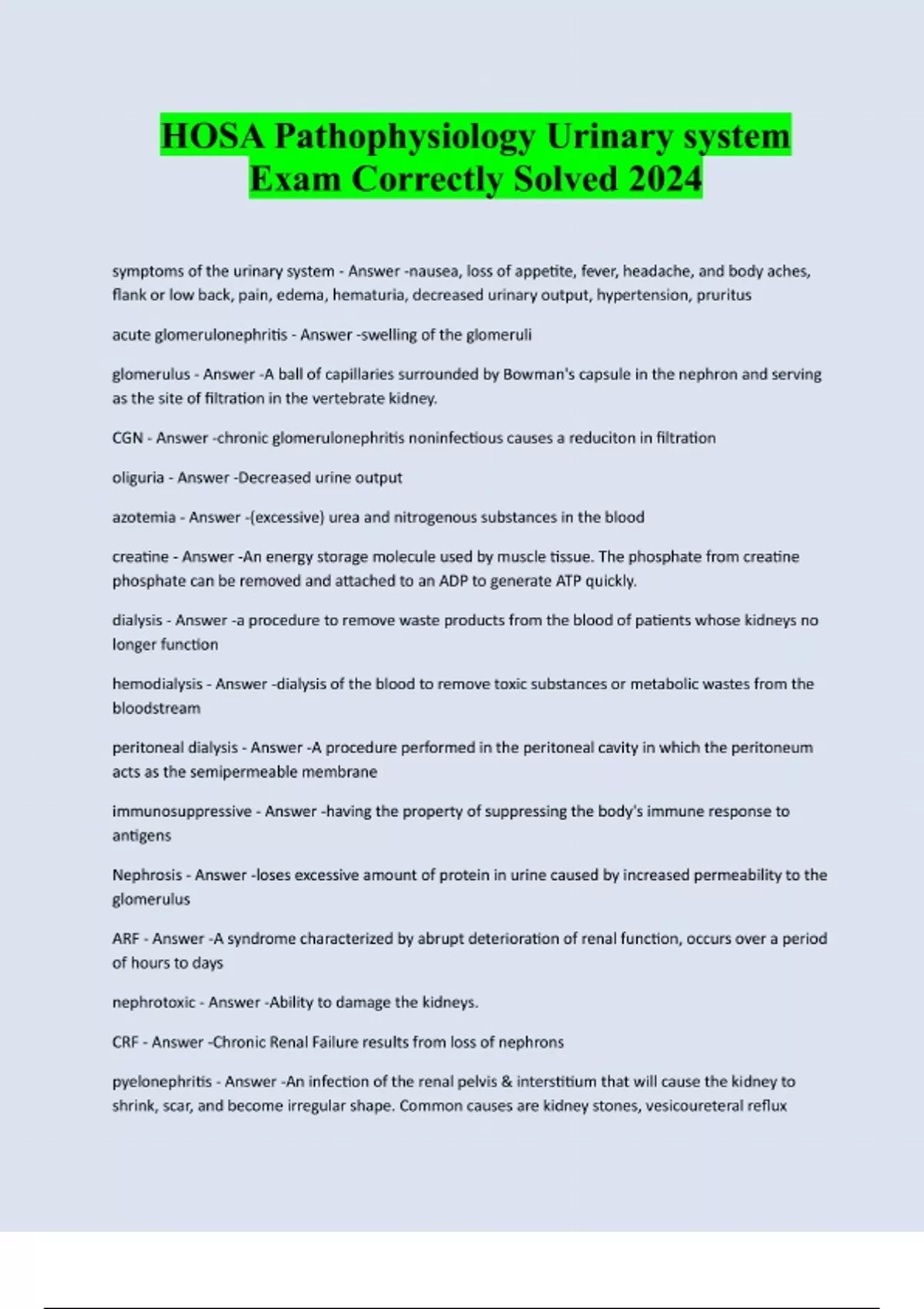 HOSA Pathophysiology Packaged Exams 100% Solved andGradedA+:::Latest Update 2024/2025