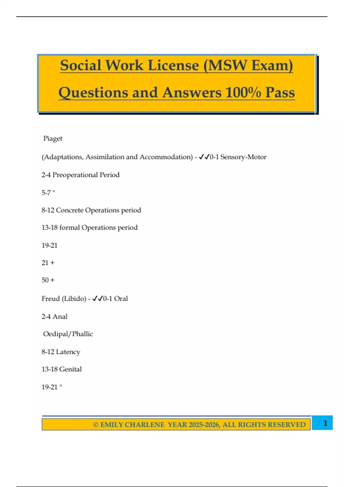 Social Work License (MSW Exam) Questions and Answers 100% Pass
