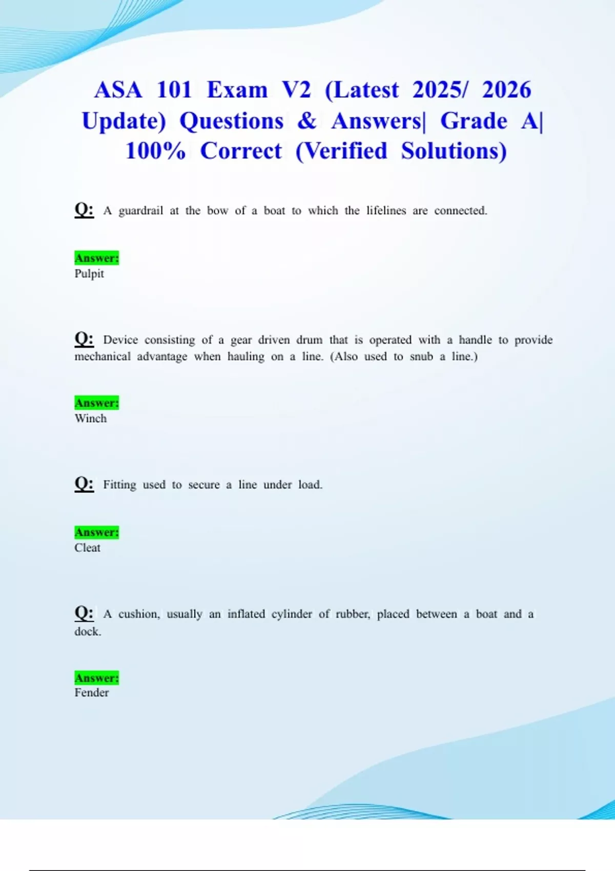 ASA 101 Exam V2 (Latest 2025/ 2026 Update) Questions & Answers| Grade A| 100% Correct (Verified Solutions)