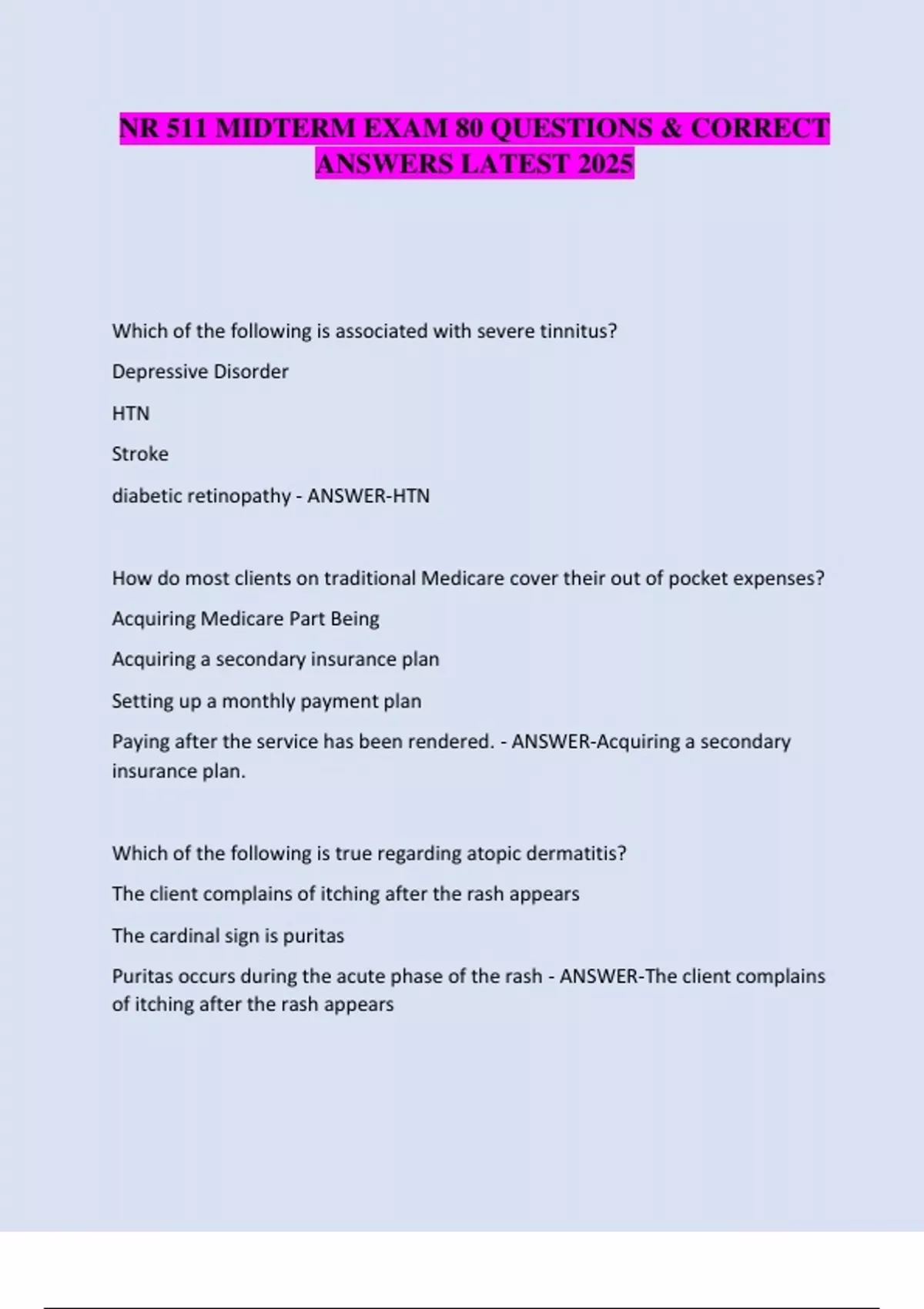 NR 511 MIDTERM EXAM 100 QUESTIONS & CORRECT ANSWERS LATEST 2025