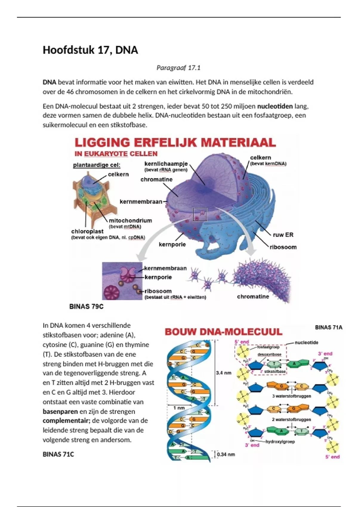 Samenvattingen van het vak Biologie, inclusief bijbehorende BiNaS tabellen.