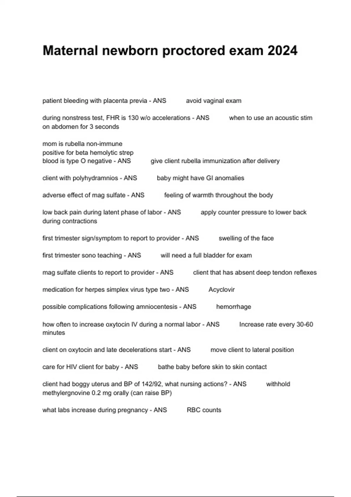 Maternal newborn proctored exam 2024 Questions With Correct Solutions