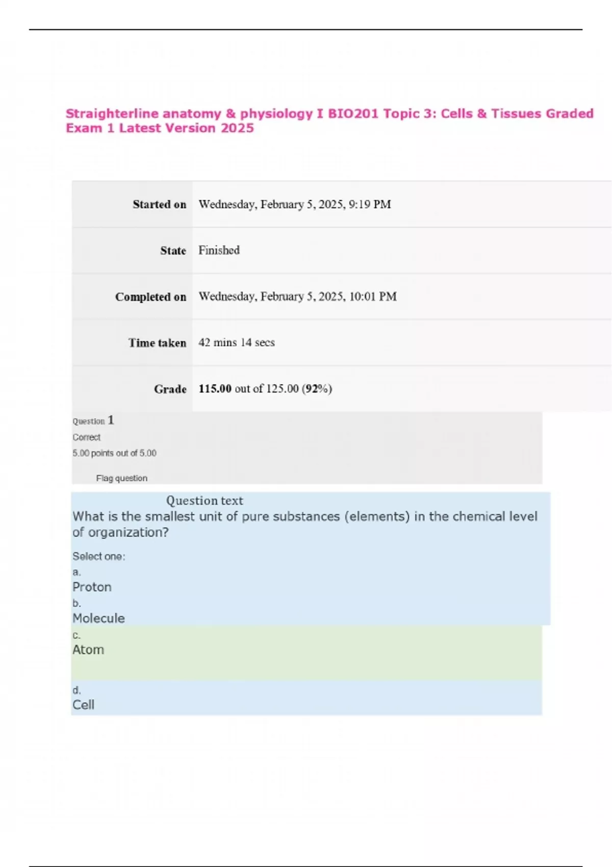 Straighterline anatomy & physiology I BIO201 EXAMS Questions and Answers Latest Version 2025