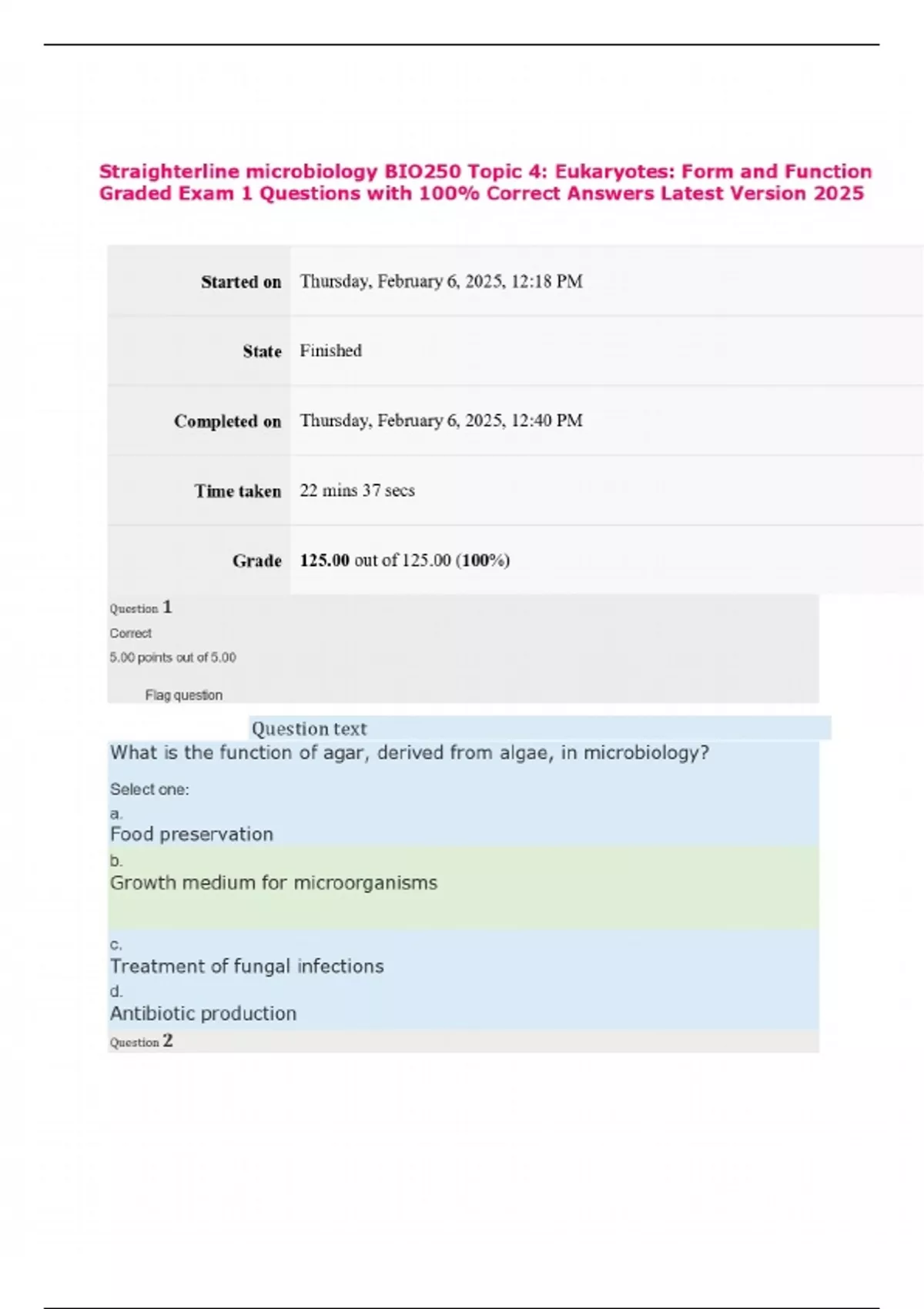 Straighterline microbiology BIO250 Topic exams Questions and Answers Latest Version 2025
