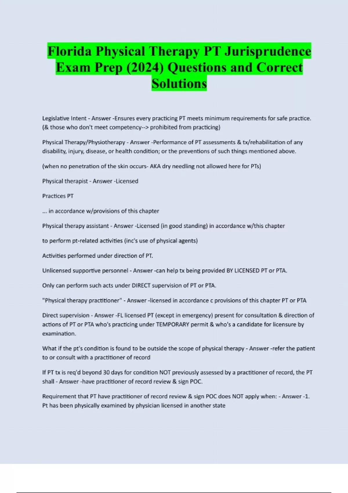 FLORIDA FT JURISPRUDENCE PACKAGED EXAMINATIONS ACCURATELY SOLVED:::LATEST UPDATE 2024/2025