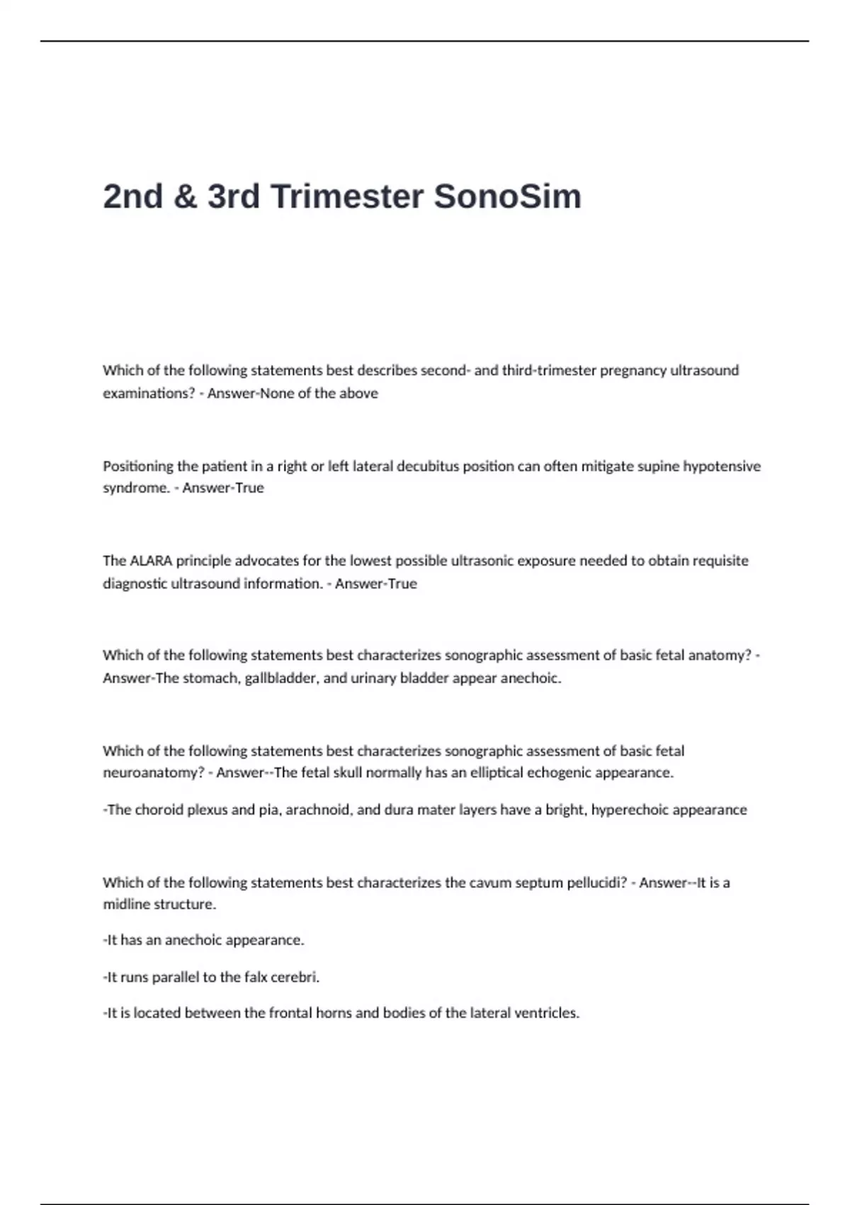 2nd & 3rd Trimester SONOSIM Exam Questions with 100% Correct Answers,Bladder Scanning SONOSIM Exam Questions with Correct Answers |UPDATED!!!!,Breast SONOSIM Mastery Test Questions and Correct Answer VERIFIED,Core Clinical Renal SONOSIM Exam Questions and Answers |UPDATED,Exam 1 SONOSIM TEST QUESTIONS AND CORRECT ANSWERS,