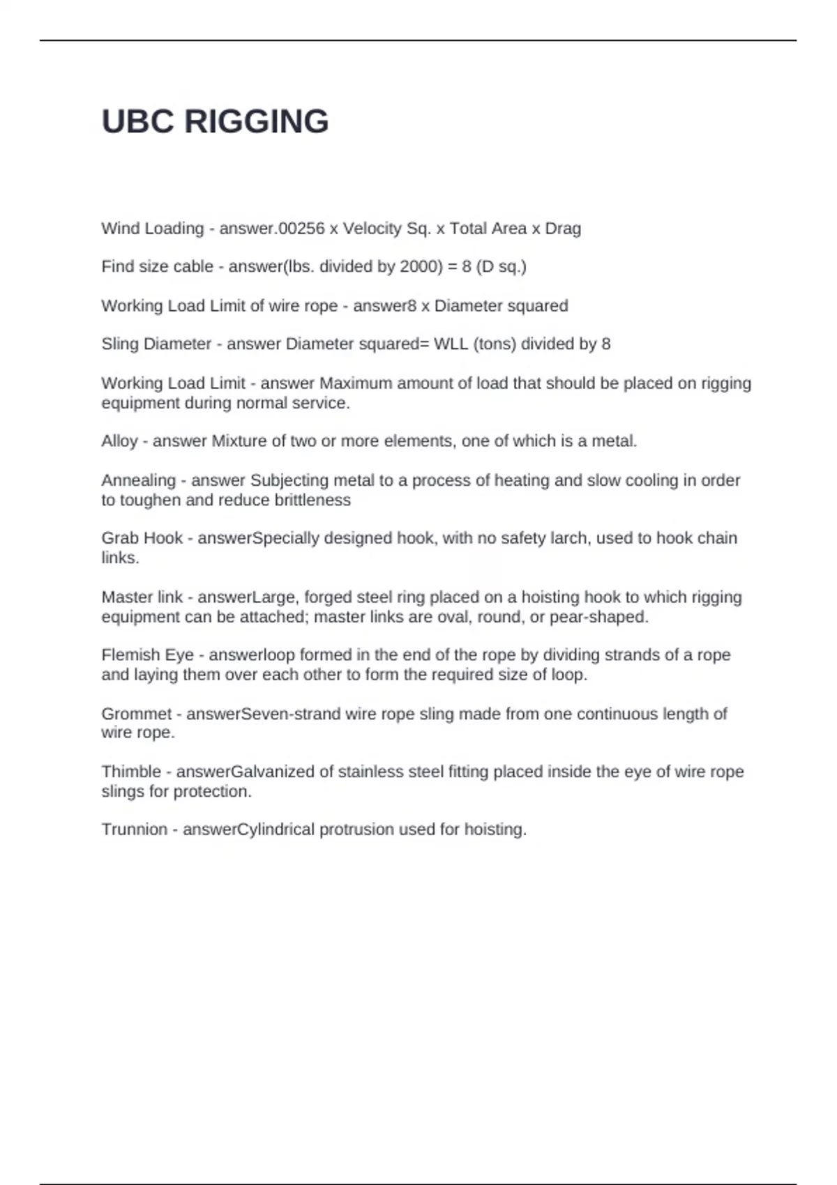 UBC RIGGING QUESTIONS AND ANSWERS 100% CORRECT
