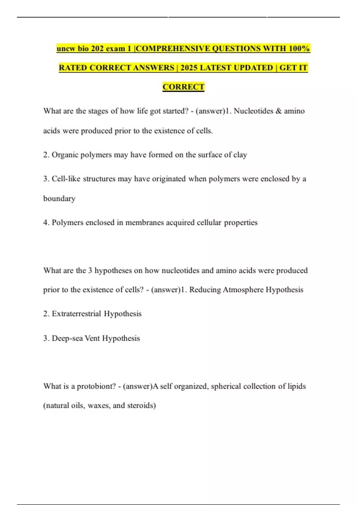 uncw bio 202 exam 1 |COMPREHENSIVE QUESTIONS WITH 100% RATED CORRECT ANSWERS | 2025 LATEST UPDATED | GET IT CORRECT