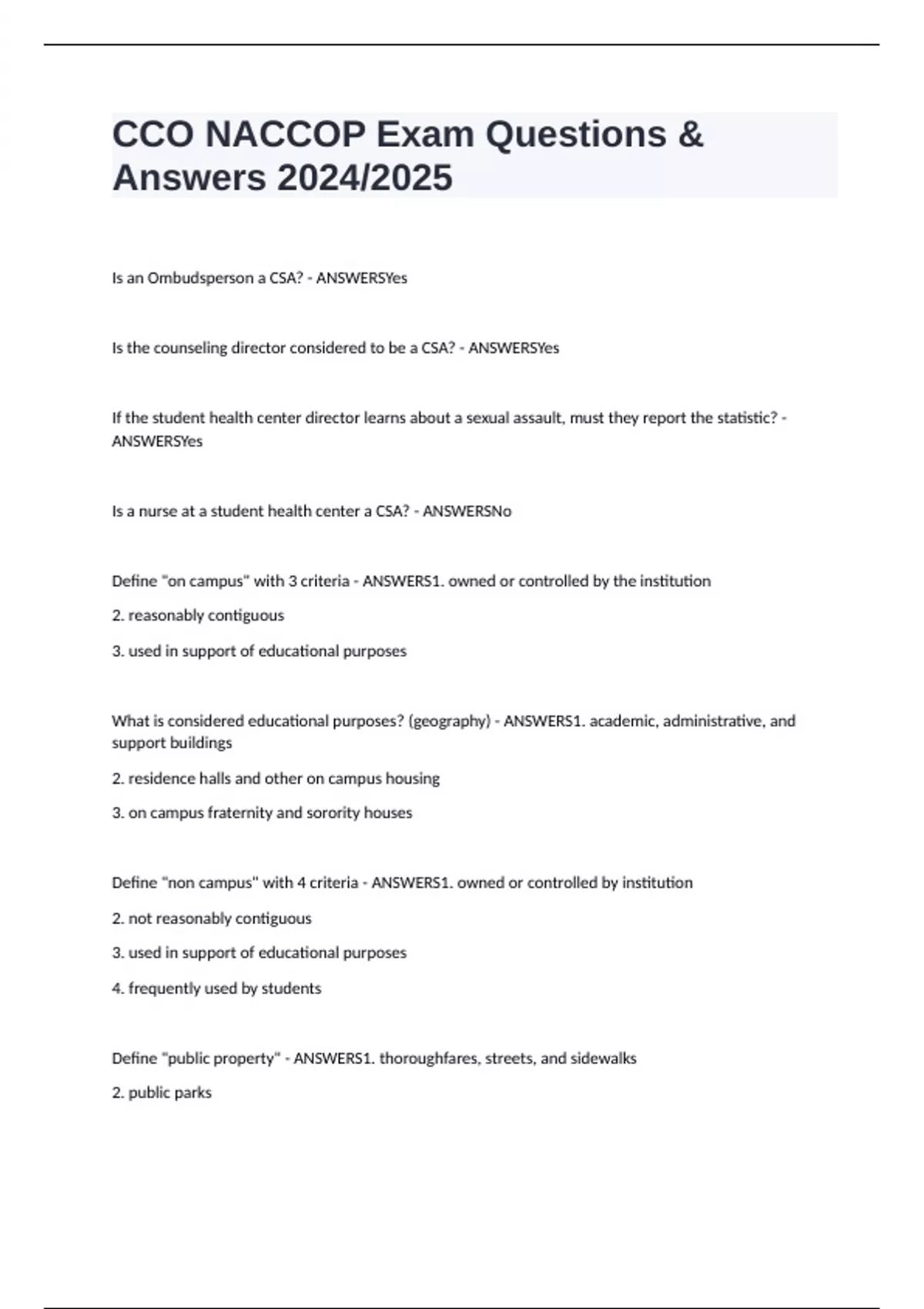 CCO NACCOP Exam Questions & Answers 2024/2025