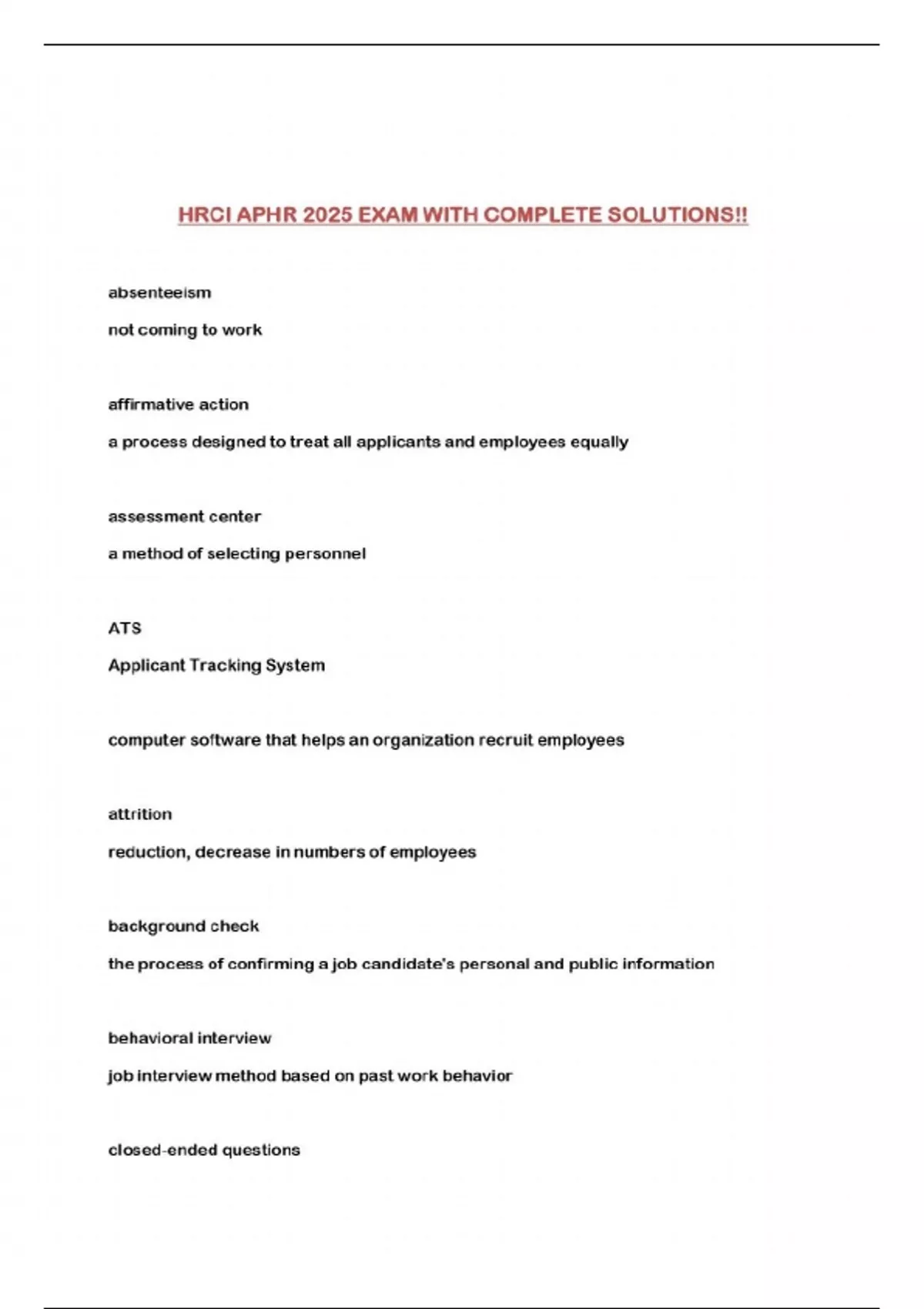 HRCI APHR 2025 EXAM WITH COMPLETE SOLUTIONS!!