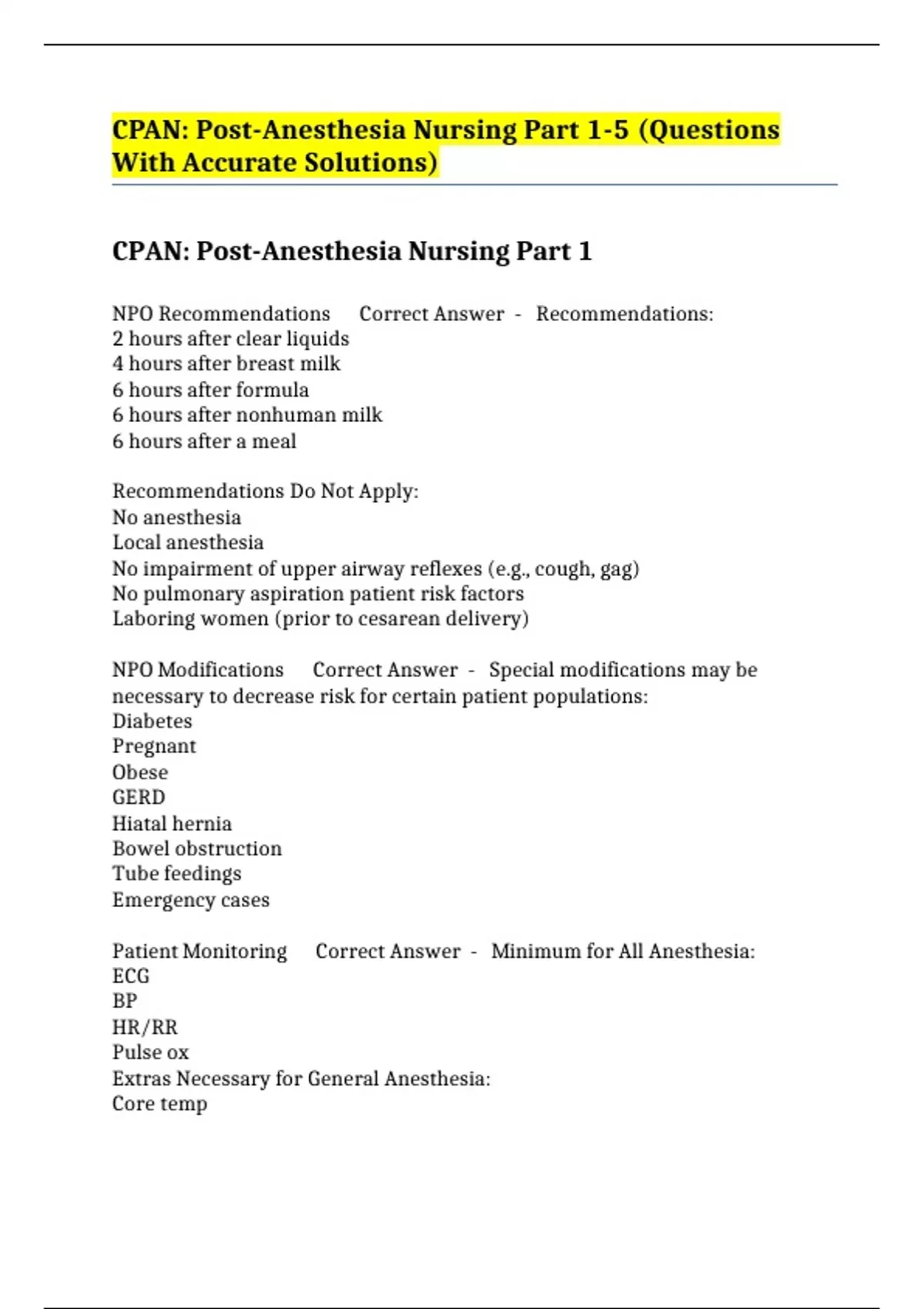 BUNDLE::- POST ANESTHESIA CARE EXAMS