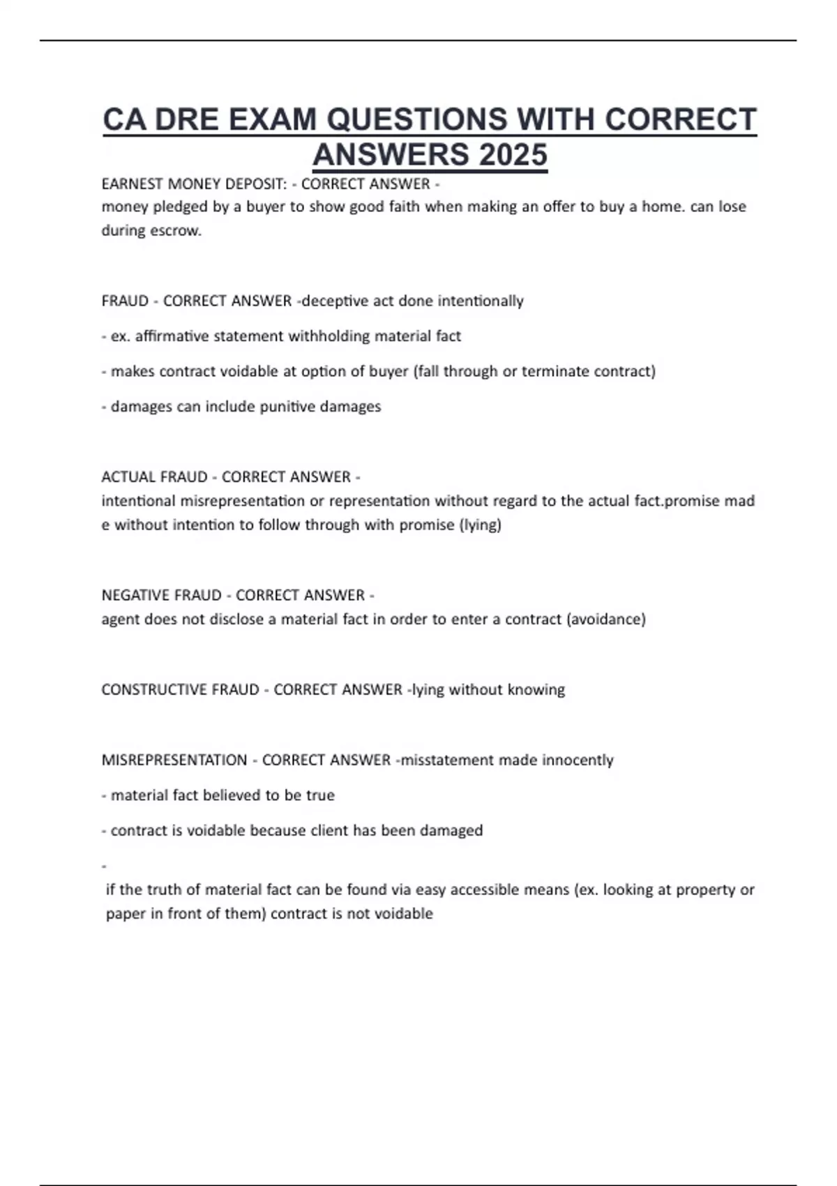 DRE QUESTIONS WITH CORRECT ANSWERS 2025