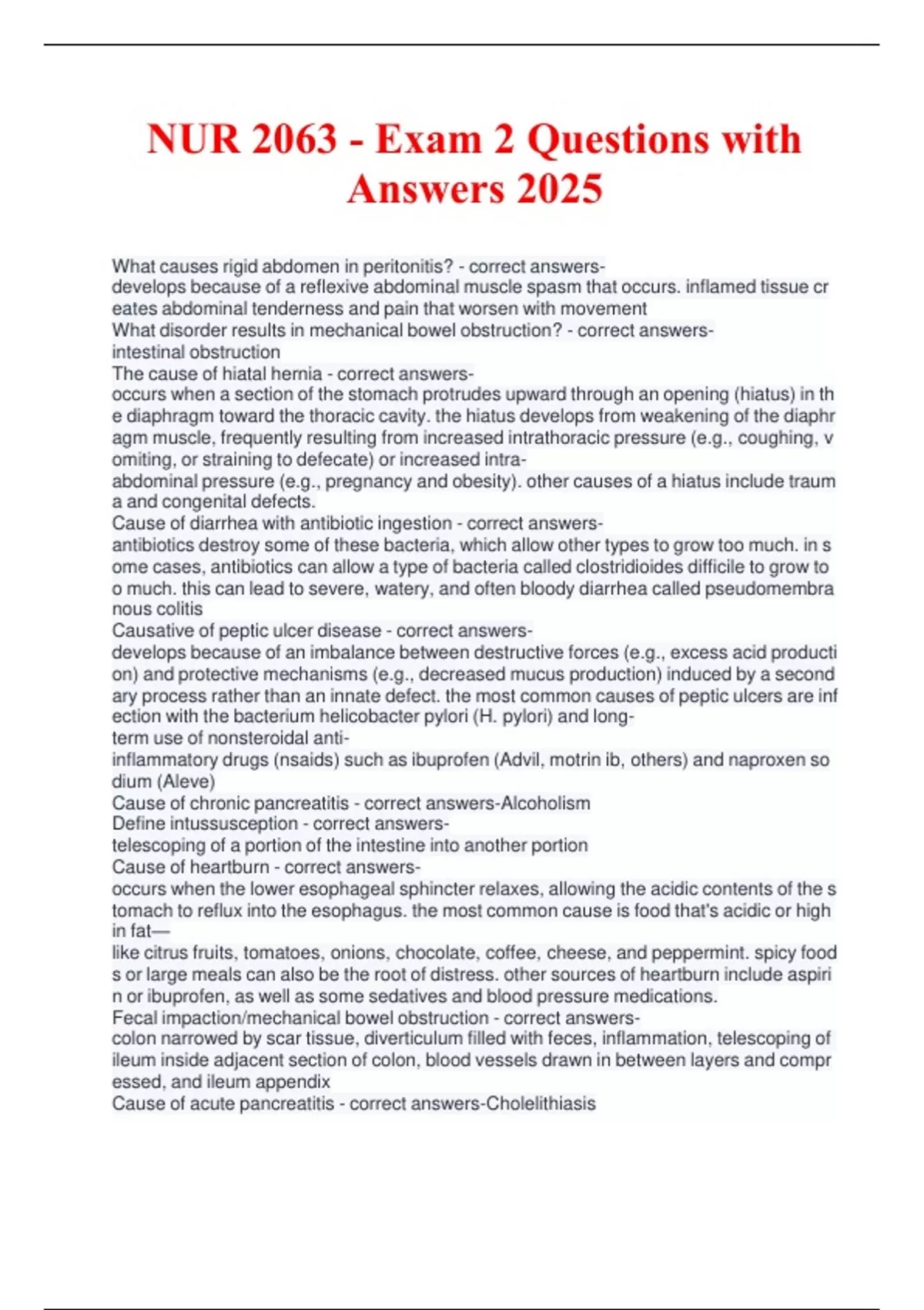 NUR 2063 - Exam 2 Questions with Answers 2025