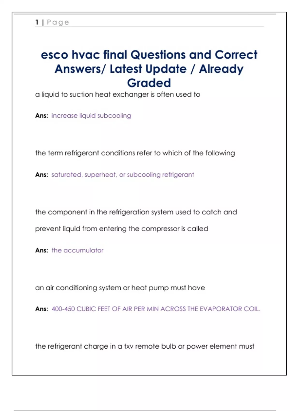 HVAC Questions and Correct Answers/ Latest Update / Already Graded