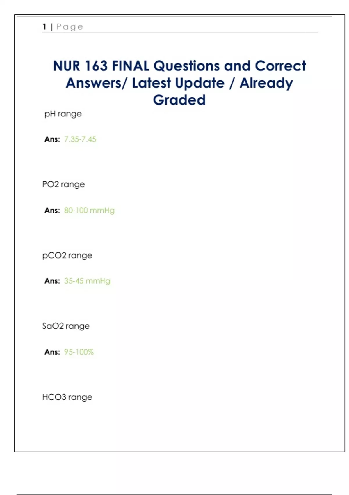 Nur Questions and Correct Answers/ Latest Update / Already Graded