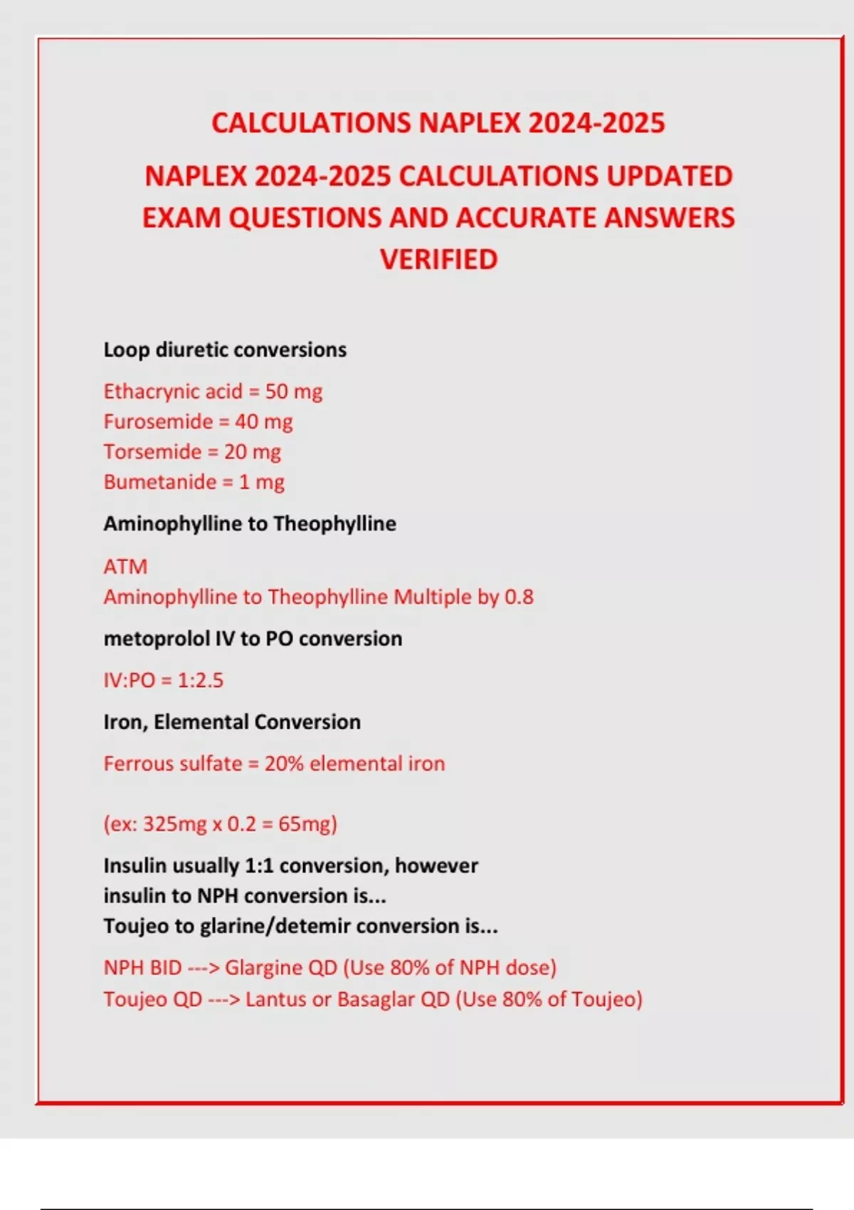 DOSAGE CALCULATIONS ACTUAL EXAM QUESTIONS AND CORRECT DETAILED ANSWERS LATEST VERSION WITH ALL TESTED QUESTIONS AND CORRECT DETAILED ANSWERS GRADED A+ DOSAGE CALCULATIONS ACTUAL EXAM QUESTIONS AND CORRECT DETAILED ANSWERS LATEST VERSION WITH ALL TESTED QUESTIONS AND CORRECT DETAILED ANSWERS GRADED A+