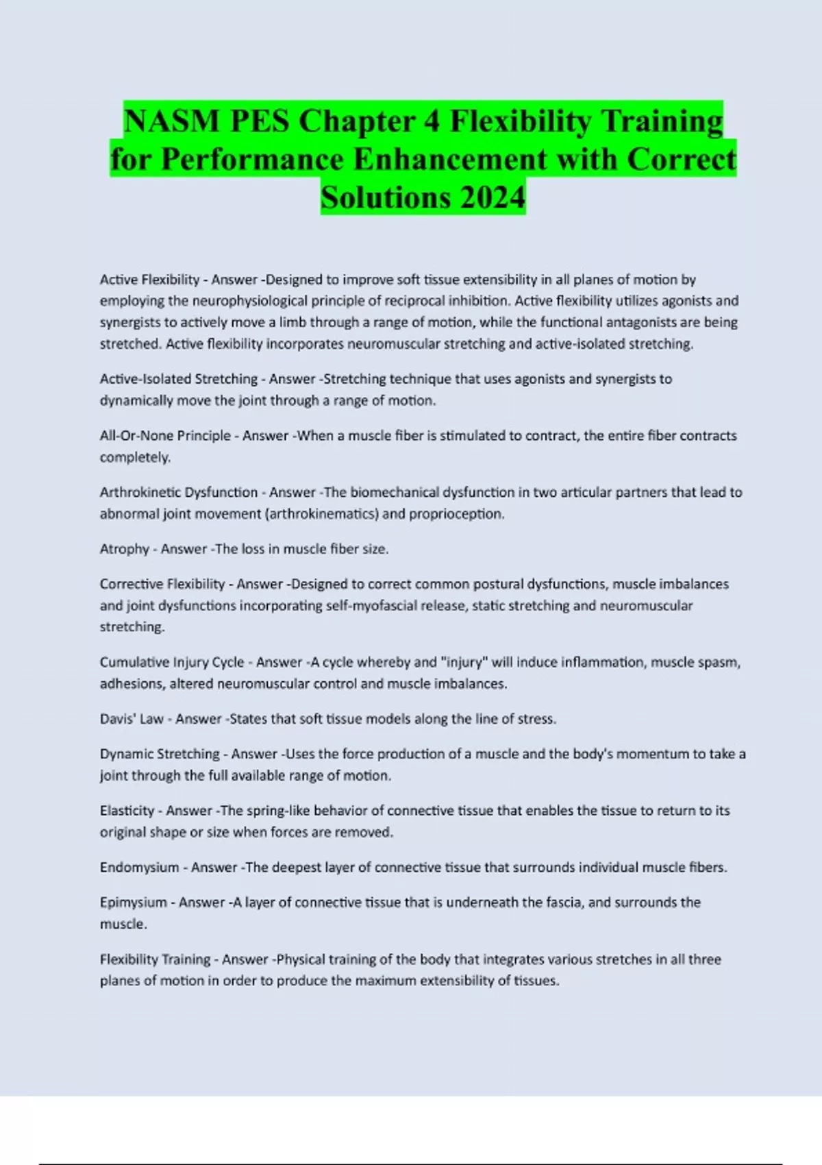 NASM STRETCHING AND FLEXIBILITY STUDY GUIDE WITH COMPLETE SOLUTION// LATEST UPDATE 2024/2025