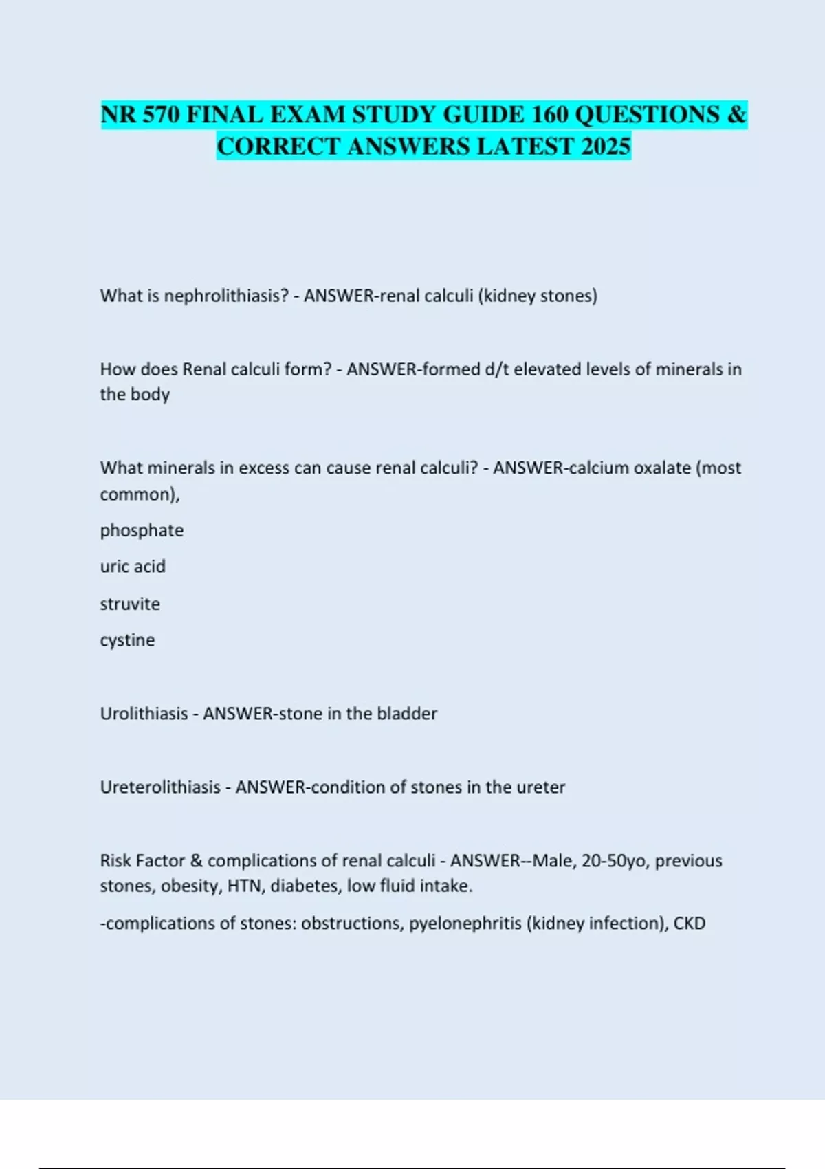 NR 570 FINAL EXAM STUDY GUIDE 160 QUESTIONS & CORRECT ANSWERS LATEST 2025