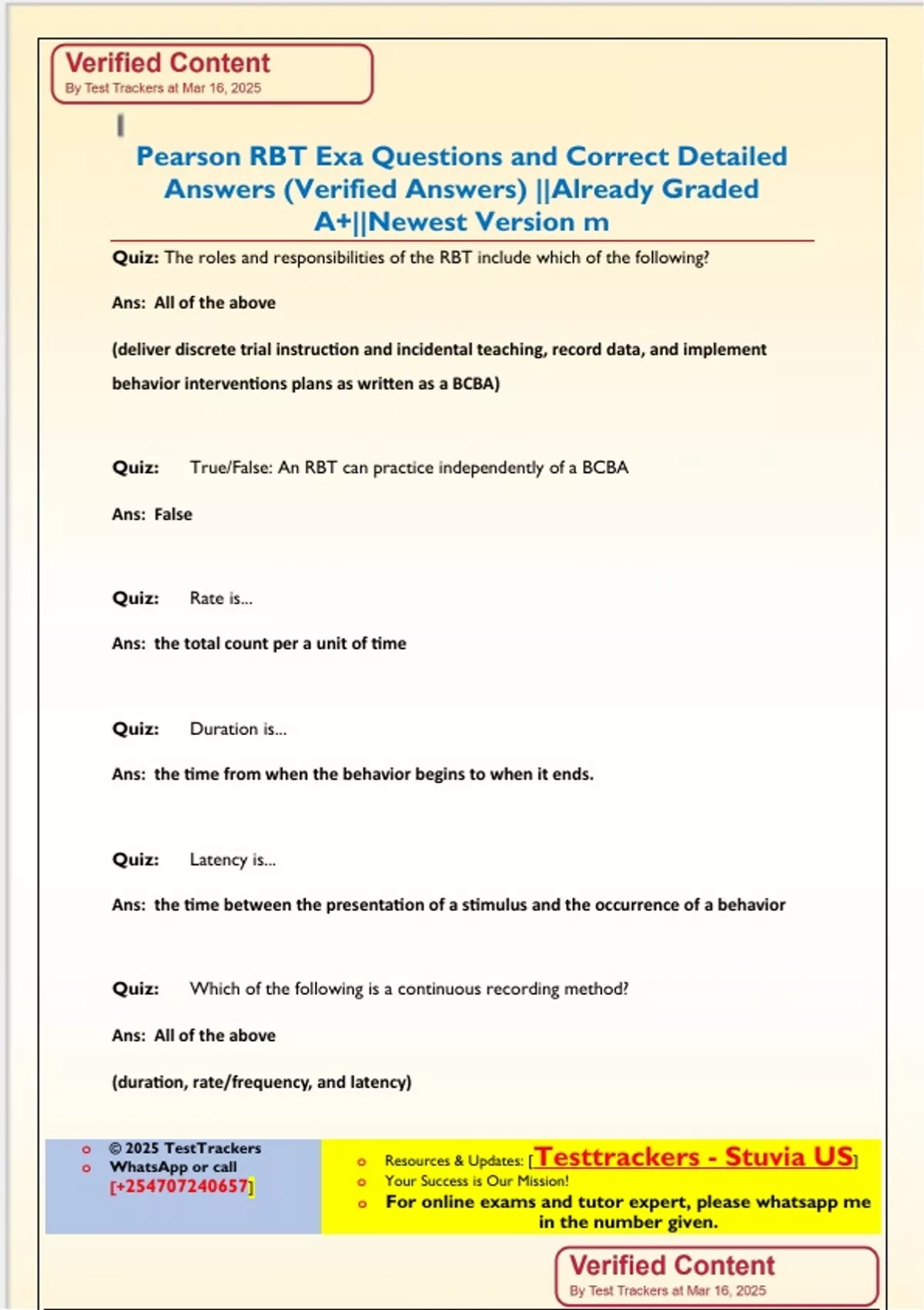 Pearson RBT Exa Questions and Correct Detailed Answers (Verified Answers) ||Already Graded A+||Newest Version
