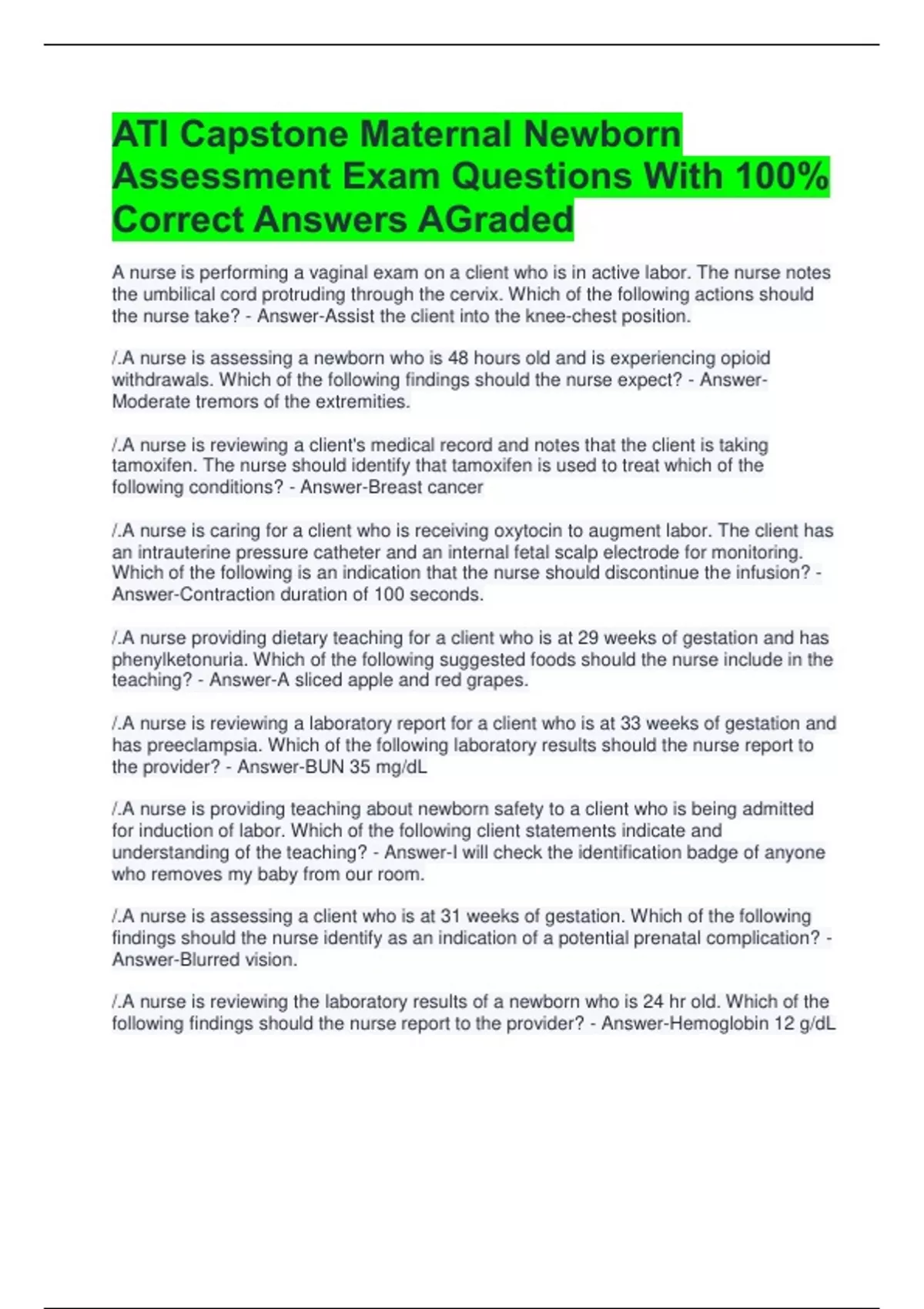 1 Exam (elaborations) ATI Capstone Leadership Exam Questions With Complete Solutions 2 Exam (elaborations) ATI Capstone Leadership And Community Health Q&A ALREADY GRADED A 3 Exam (elaborations) ATI Capstone Maternal Newborn Assessment Exam Questions With 100% Correct Answers AGraded 4 Exam (elaborations) ATI CAPSTONE MATERNAL-NEWBORN P