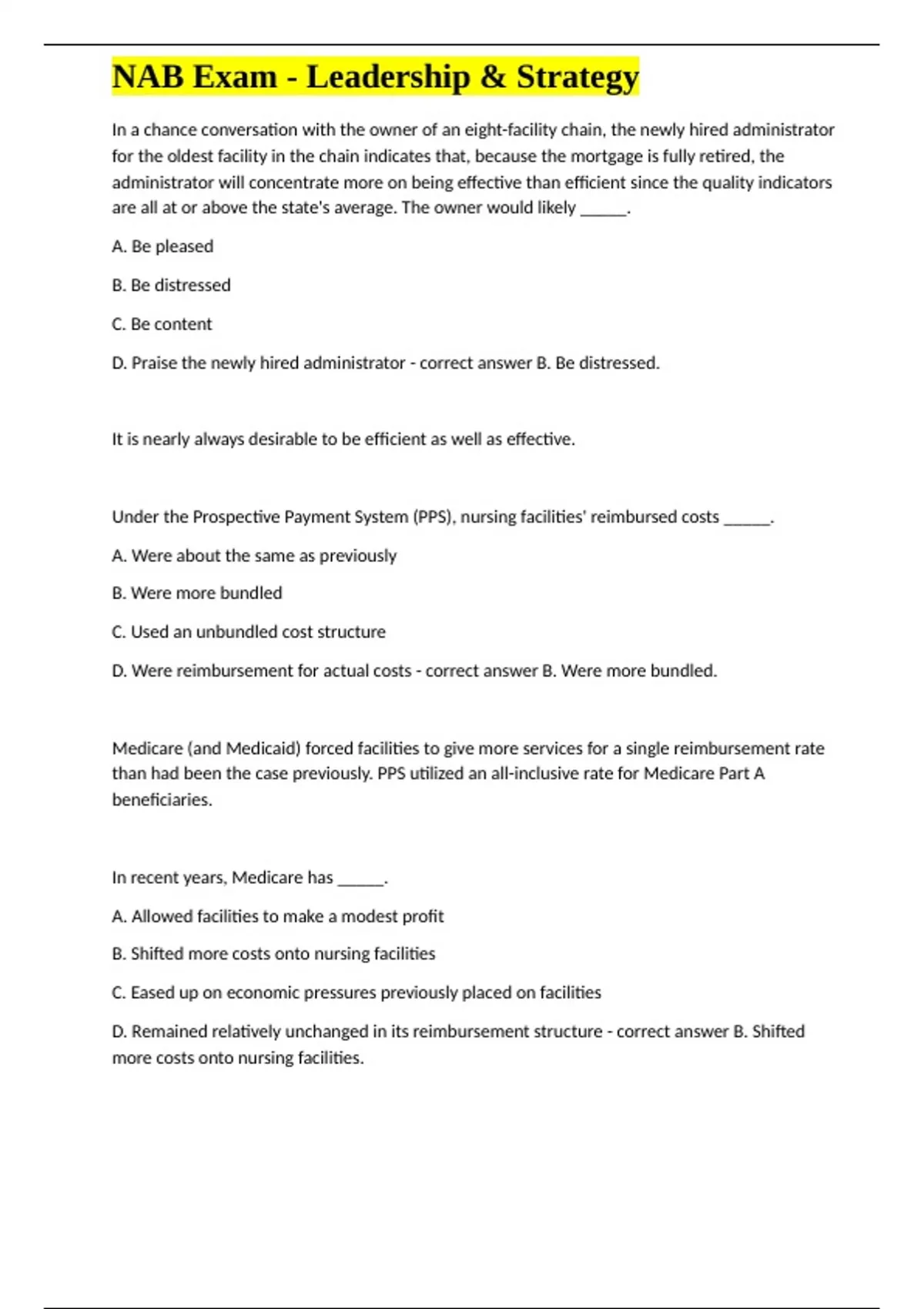 NAB Exam - Leadership & Strategy questions and answers 100% verified