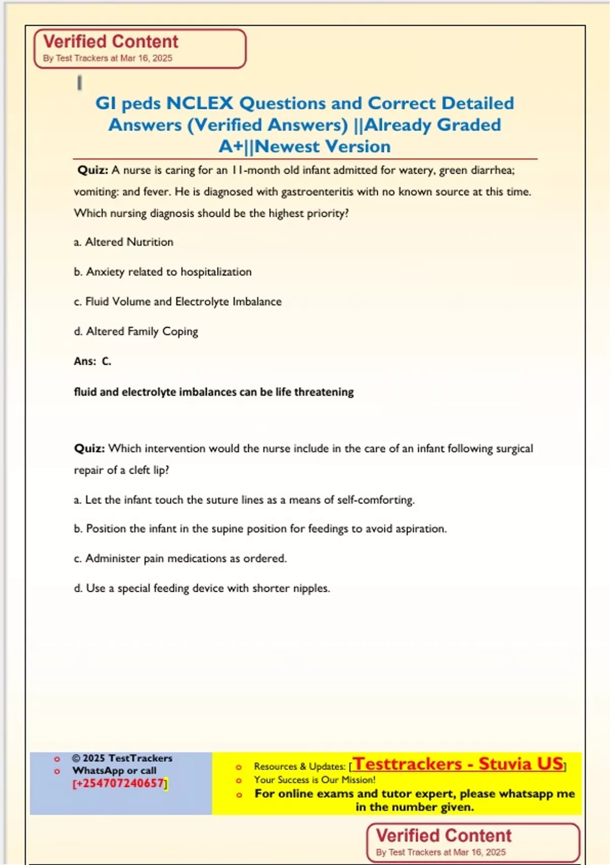 GI peds NCLEX Questions and Correct Detailed Answers (Verified Answers) ||Already Graded A+||Newest Version