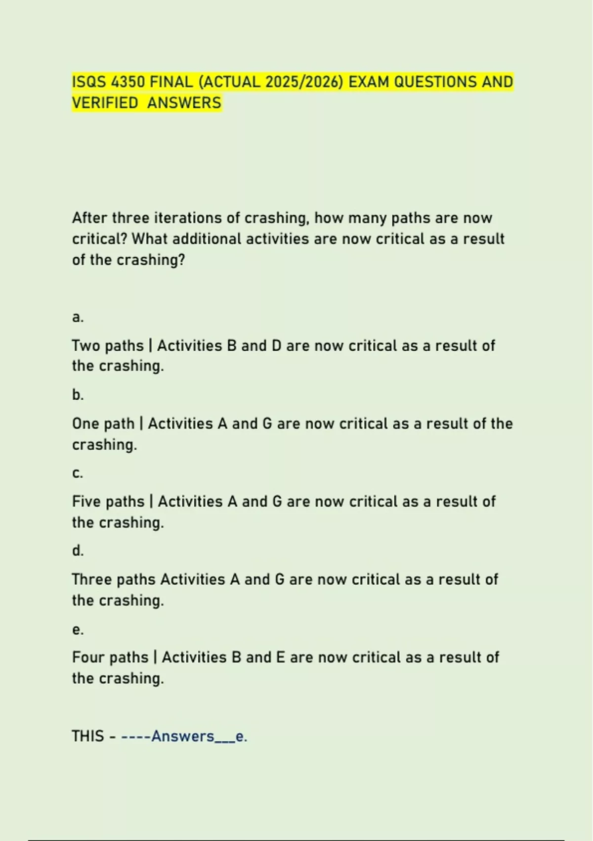 ISQS 2340 EXAM 2 ,ISQS 3344 FLAMM EXAM 2,ISQS 4350 FINAL,TTU ISQS 3344 FLAMM (ACTUAL 2025/2026) EXAM 1 REVIEW; QUESTIONS AND VERIFIED ANSWERS