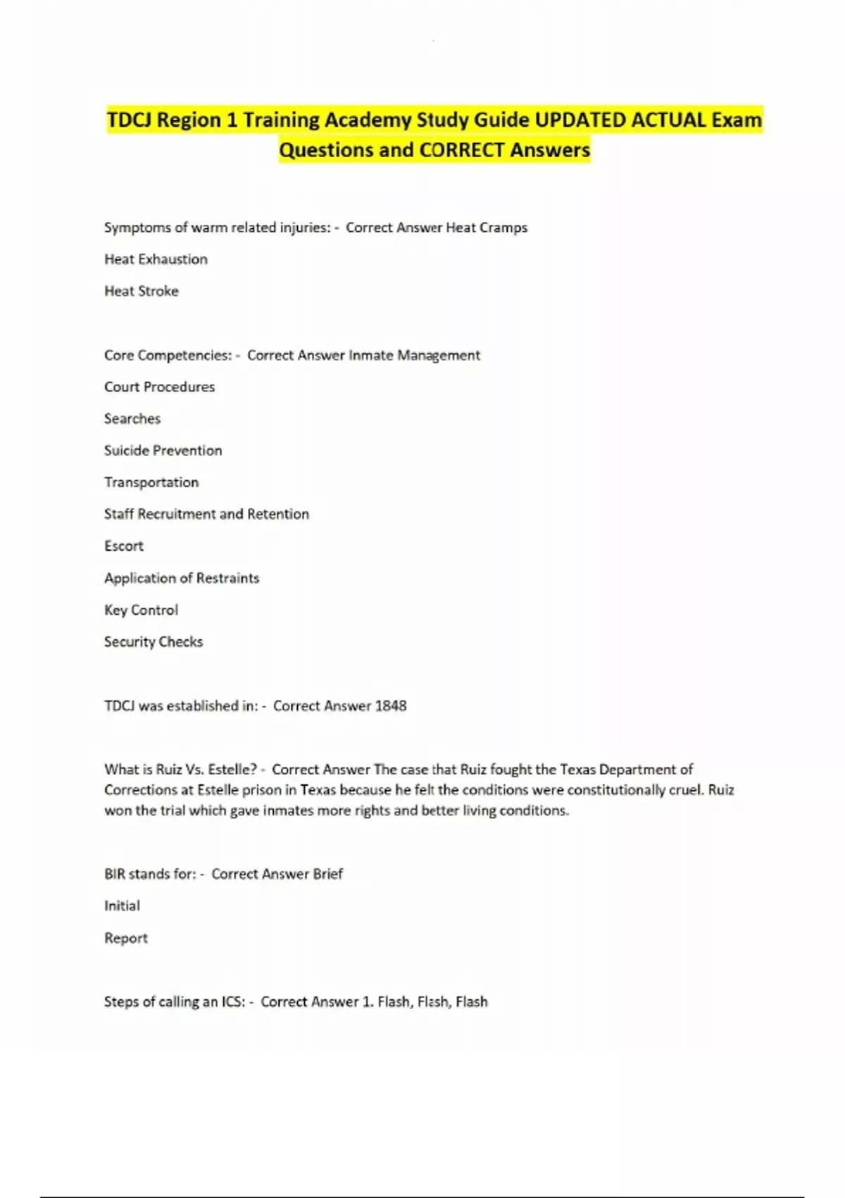 TDCJ Region 1 Training Academy Study Guide UPDATED ACTUAL Exam Questions and CORRECT Answers/Tdcj E X A M QUESTIONS AND ANSWERS 2025/2026/OVERVIEW OF TDCJ Questions And Answers 2025/2026