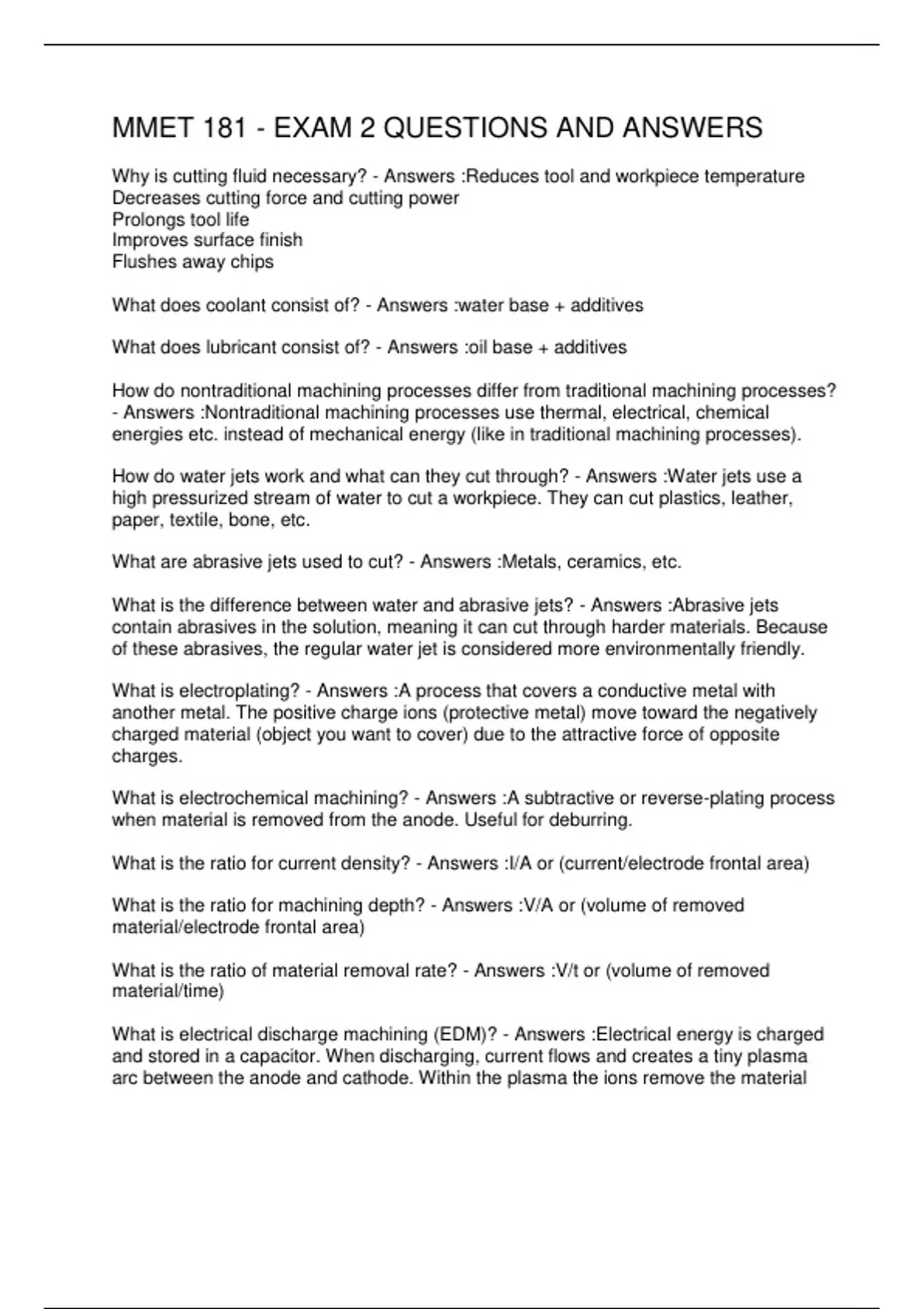MMET 181 - EXAM 2 QUESTIONS AND ANSWERS 2 Exam (elaborations) MMET 181 (HUNG AND OBEIDAT) EXAM 1 3 Exam (elaborations) MMET 181 EXAM 1 QUESTIONS AND ANSWERS 4 OTHER MMET 181 EXAM 1 STUDY GUIDE 5 Exam (elaborations) MMET 181 EXAM ONE QUESTIONS AND ANSWERS 6 Exam (elaborations) MMET 181 FINAL EXAM QUESTIONS AND ANSWERS 7 OTHER MMET 181 FINAL ST