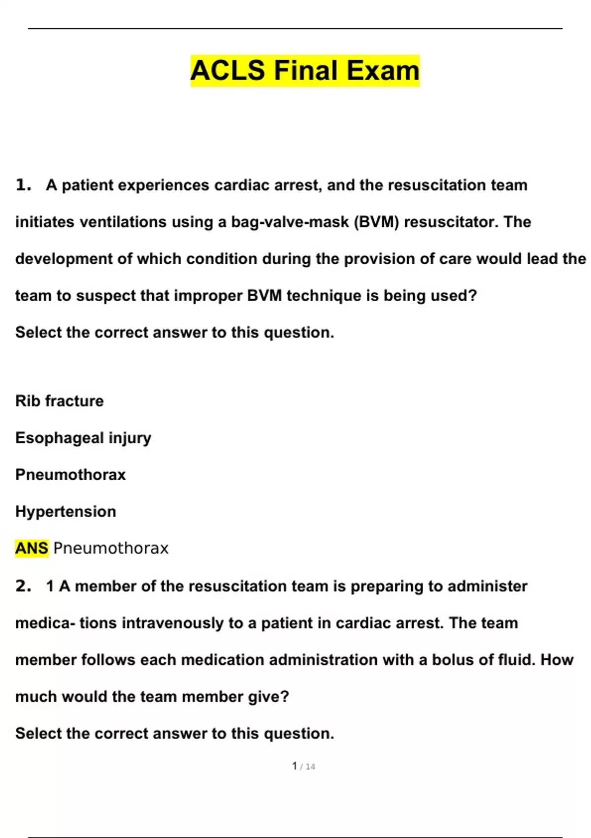 ACLS & ACLS BLS BUNDLED EXAMS******** INSTANT DOWNLOAD AS PDF FILE ******** ACLS Final Exam / 2025 RQI 2025 ACLS Healthcare Provider Exam Actual Qs & Ans to Pass the Exam, 100% Verified - PDF RQI 2025 ACLS Healthcare Provider Questions & Answers ACLS Pre-Course Self-Assessment Exam